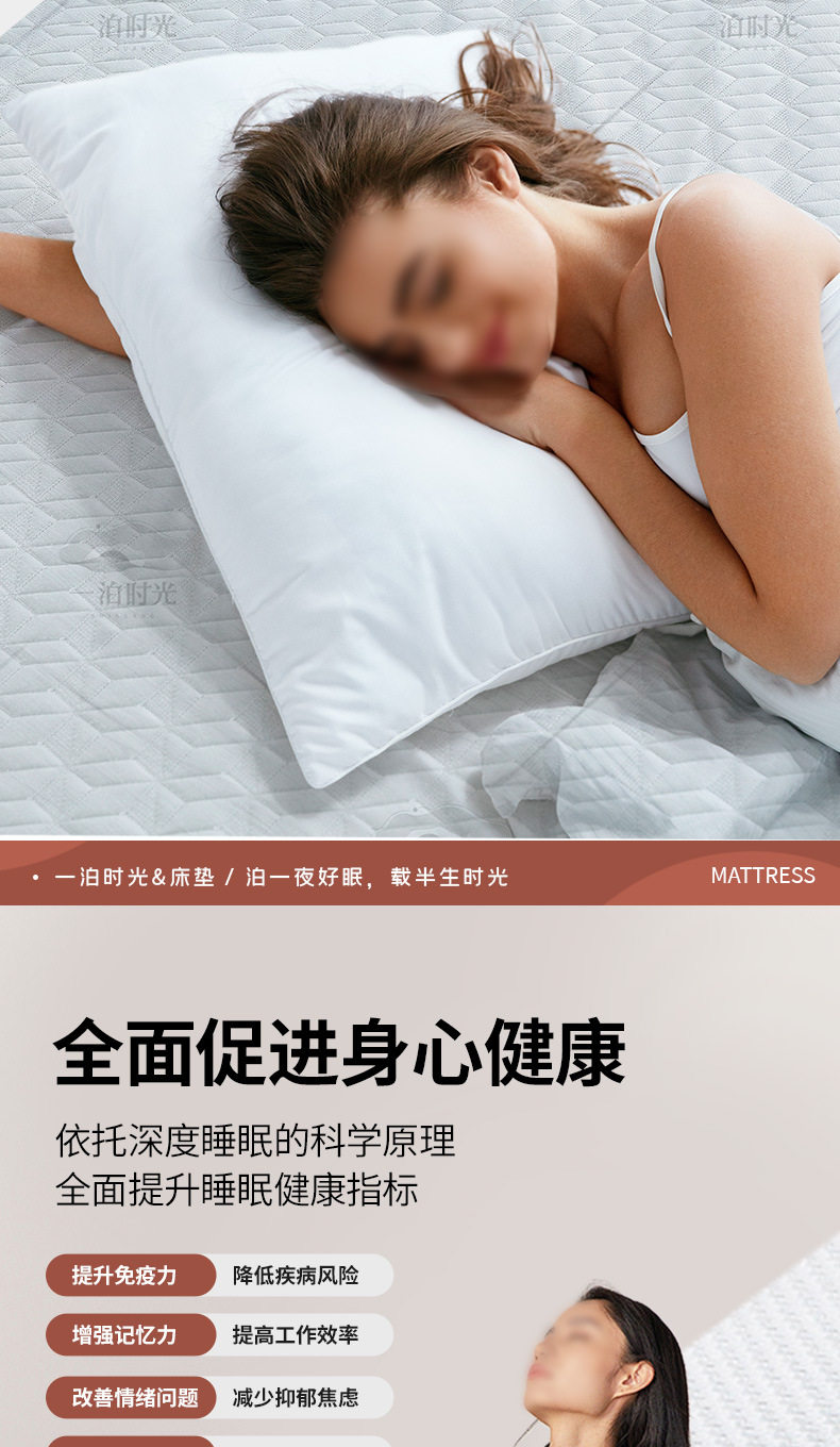 | Color | Skin-friendly, super soft and high-density knitted fabric + 3d breathable cotton + silent deep sleep round spring + natural latex |