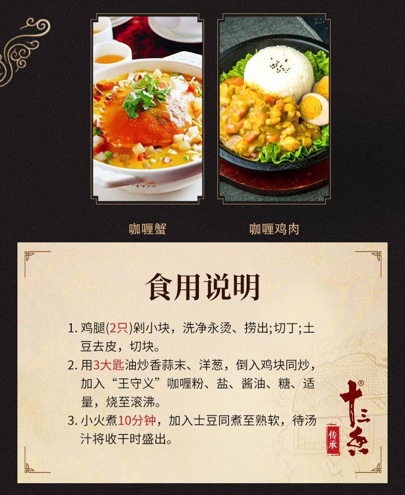 | Packaging specifications | Curry powder 40g*1 bag,Curry powder 40g*2 bags,Curry powder 40g*3 bags,Curry powder 40g*5 bags |