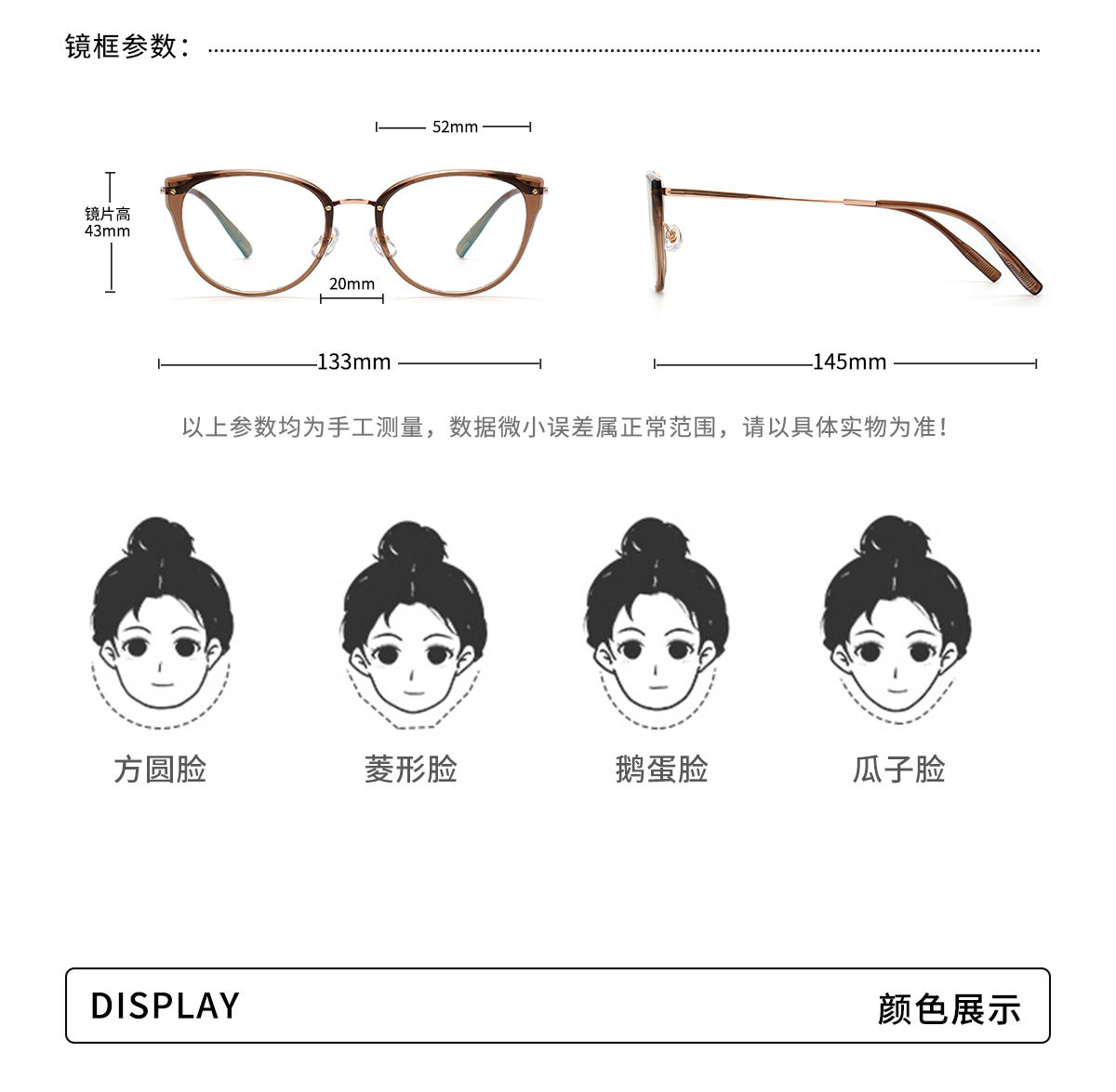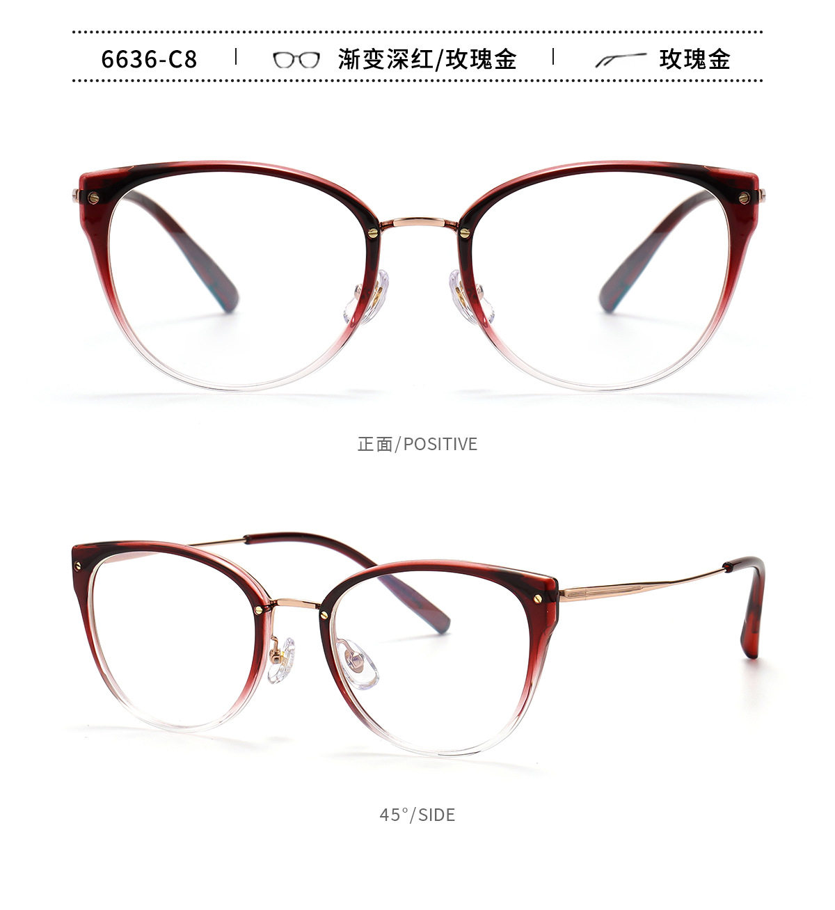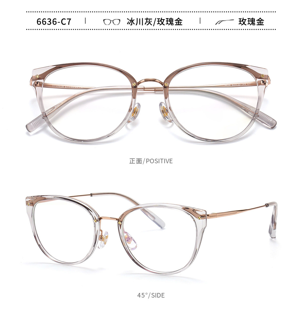| Frame color | Bright black/gold c1,Bright black/silver c2,Transparent/silver c3,Glacier gray/silver c4,Champagne color c5,Transparent tea/rose gold c6 (main color),Glacier gray/rose gold c7,Gradient deep red/rose gold c8 |