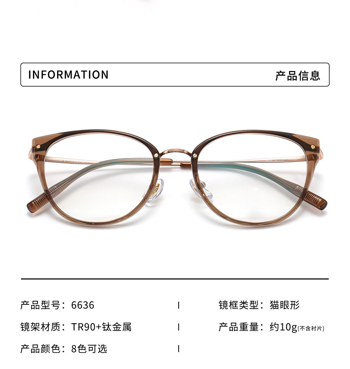 Net red plain pure titanium mirror leg glasses frame wholesale 6636 retro cold brown myopia TR90 frame Danyang glasses