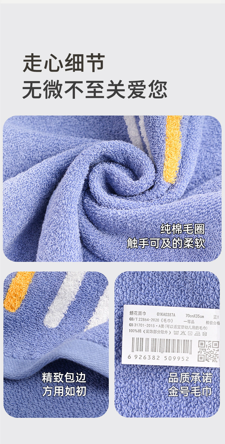 Gold Towel 7A Antibacterial Cotton 100% Cotton Type a Men's Face Wash Household Adult Face Wash Absorbent Towel