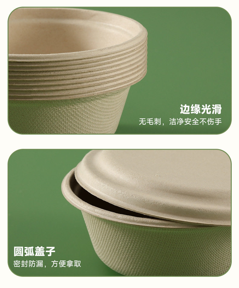 Disposable Lunch Box Paper Bowl Sugar Cane Pulp Biodegradable Thickeneded Tableware Bowl Burger Pulp Box Fruit Disc Salad Bowl