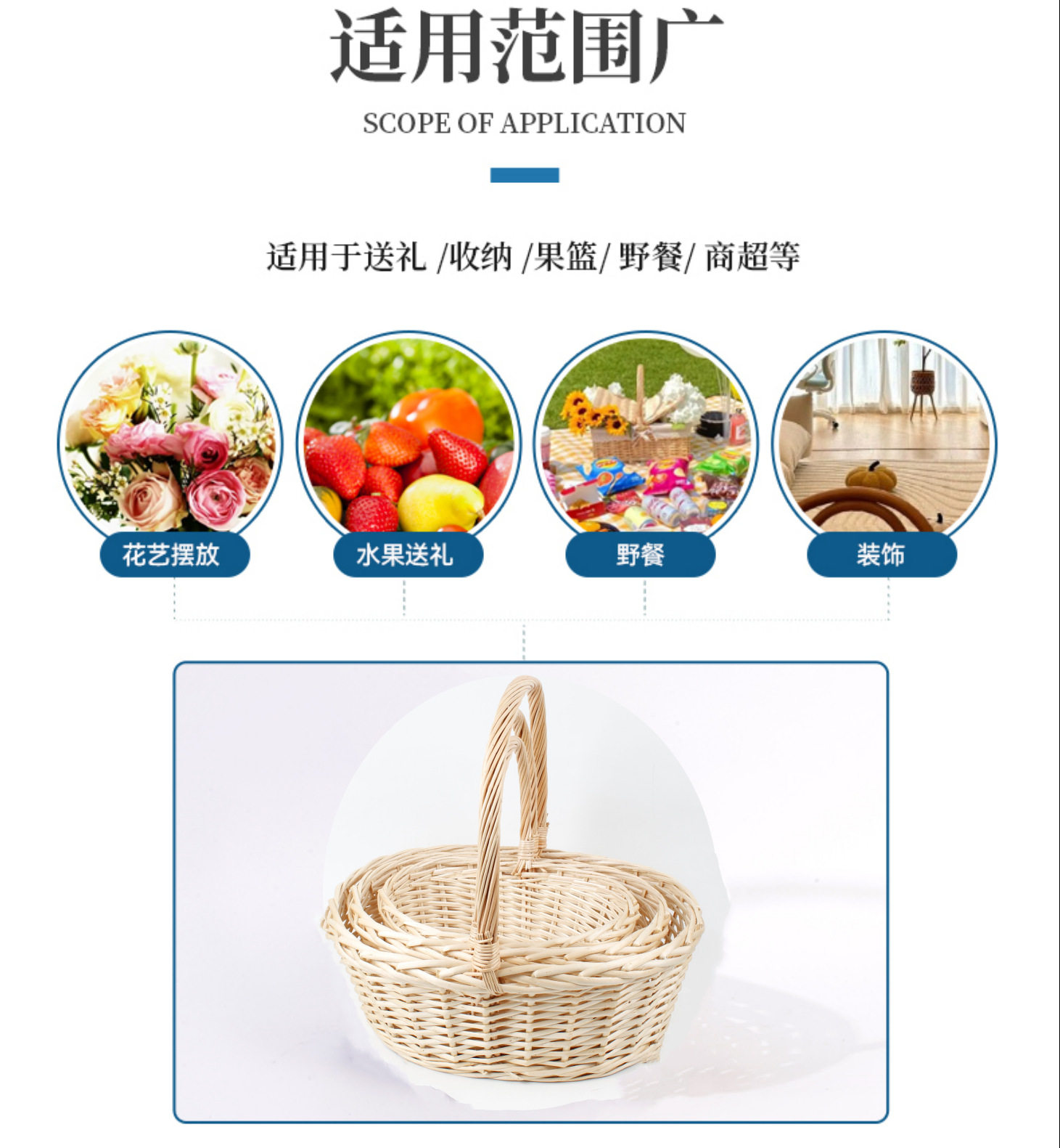 Wicker Fruit Basket Storage Basket Handmade Rattan Fruit Basket Fruit Gift Basket Vegetable Basket Portable Basket Flower Basket Factory