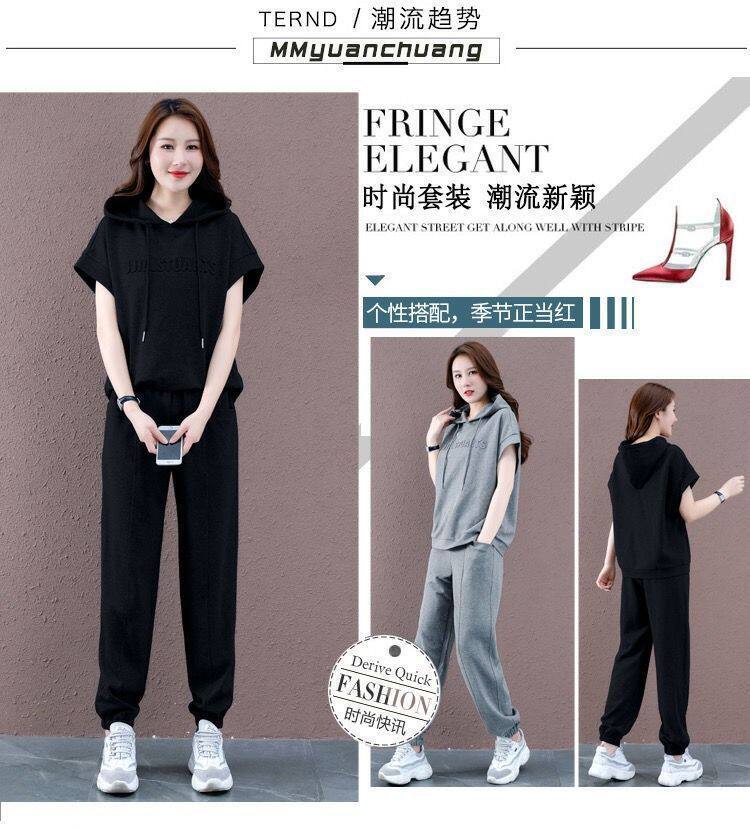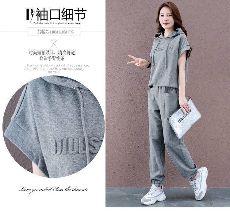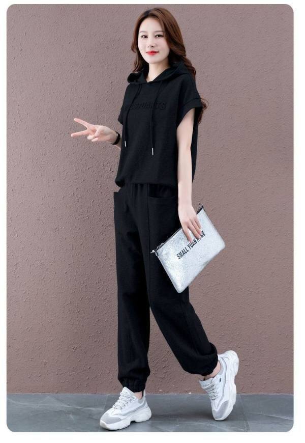 Plus Size Women's Clothing 2025 Fat Girl Summer New Loose Slimming Casual Sports Suit Fashionable Hooded Two-Piece Set