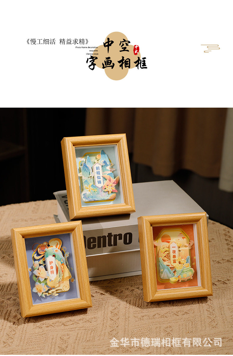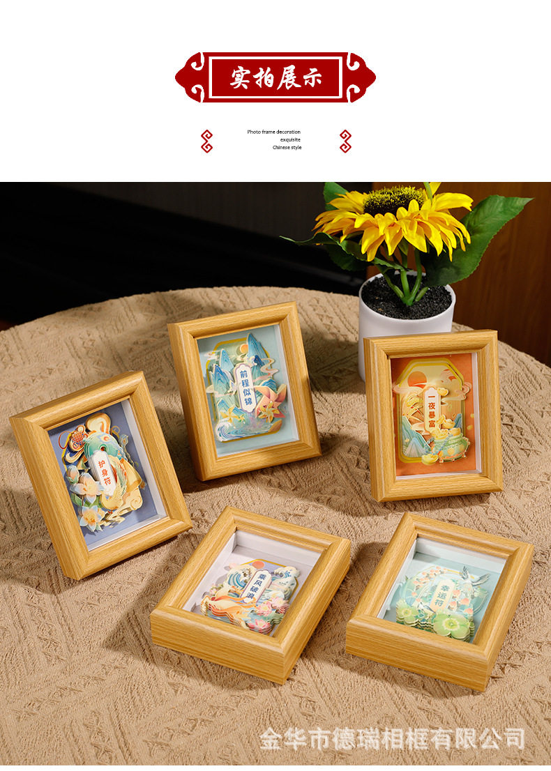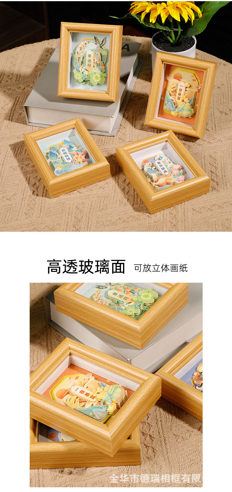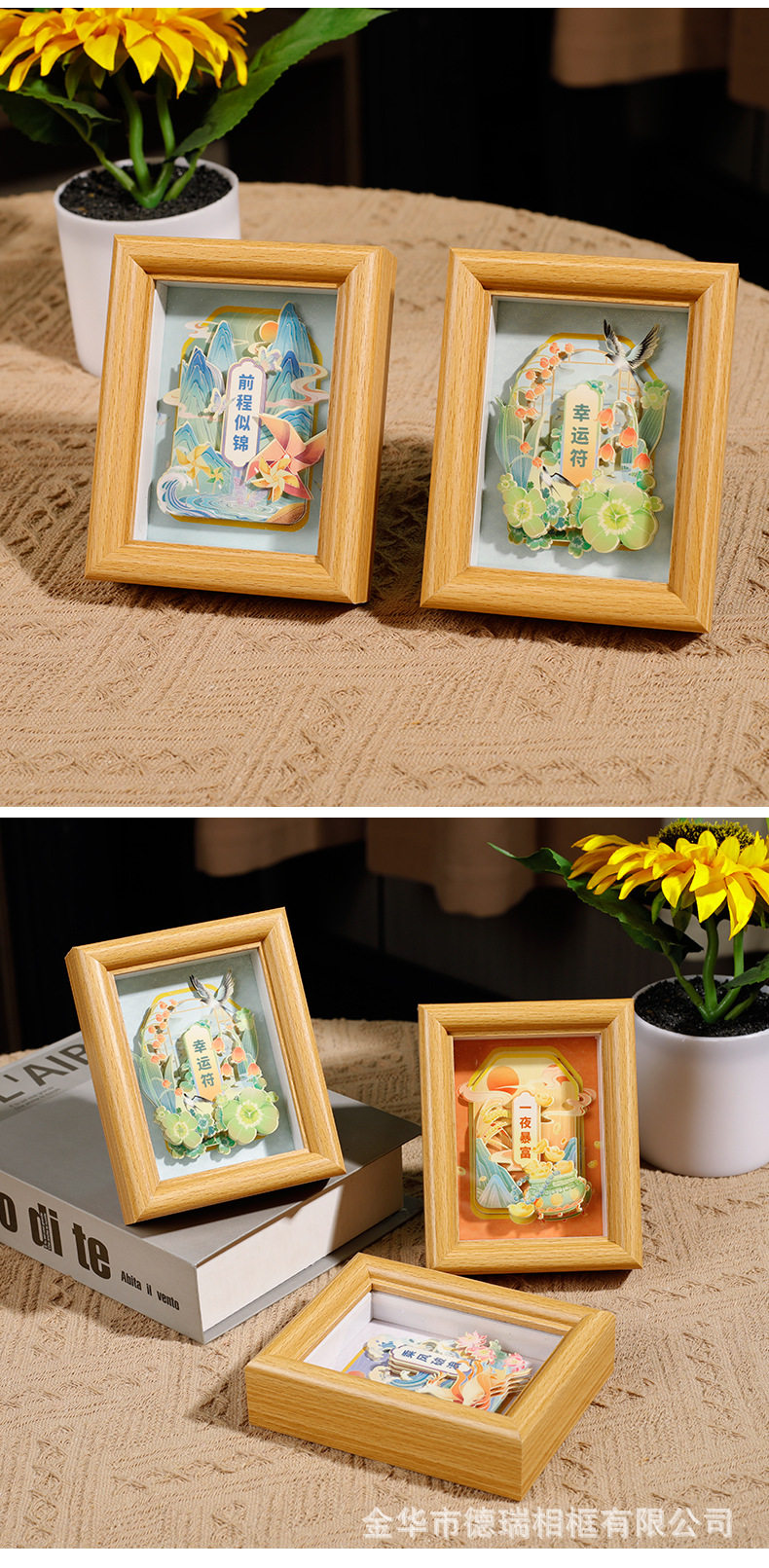 Mini Hollow Glass Surface Three-Dimensional Painting Chinese Style Mdf Wooden Photo Frame Sticker Display 7.5*10 Small Ornaments Wholesale