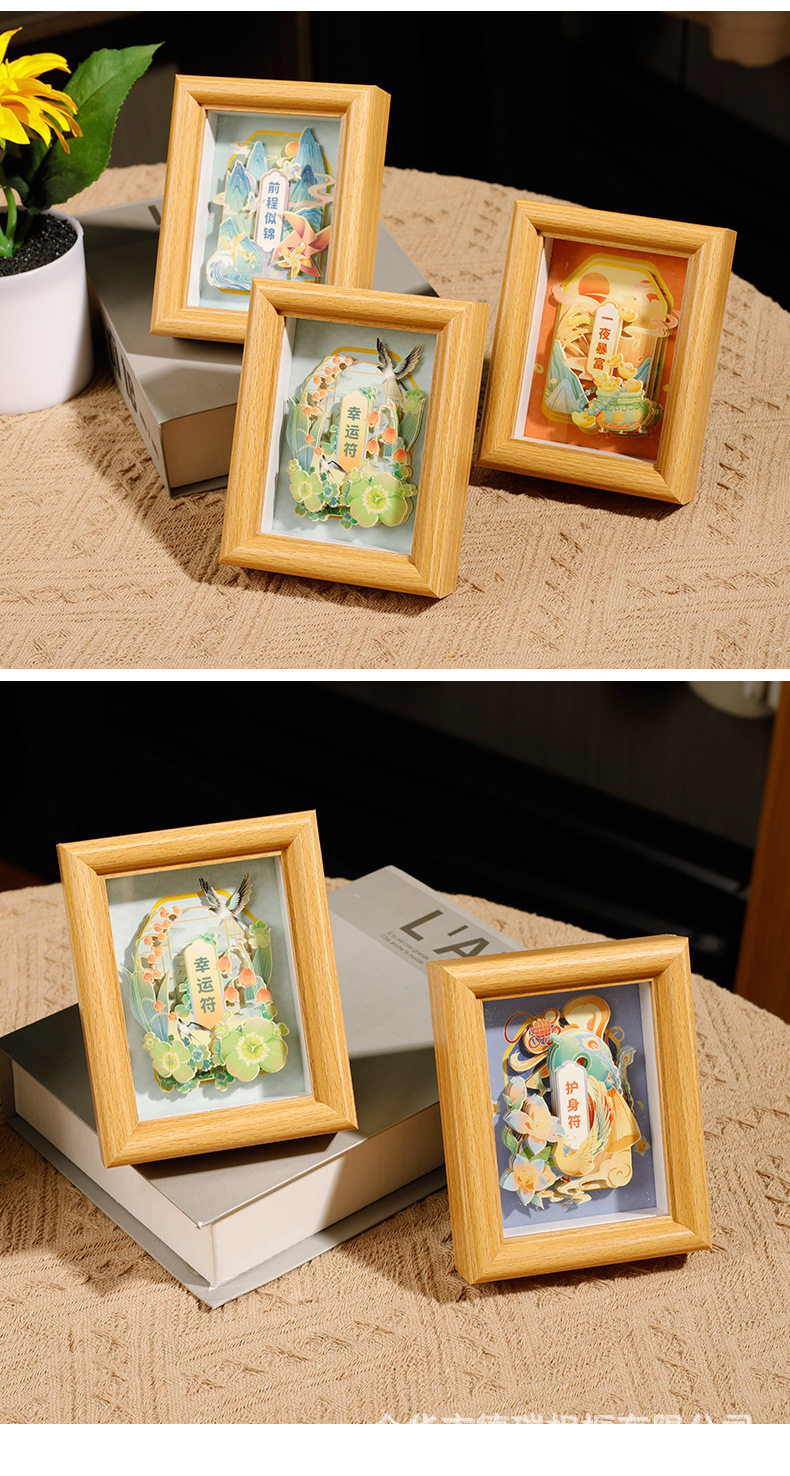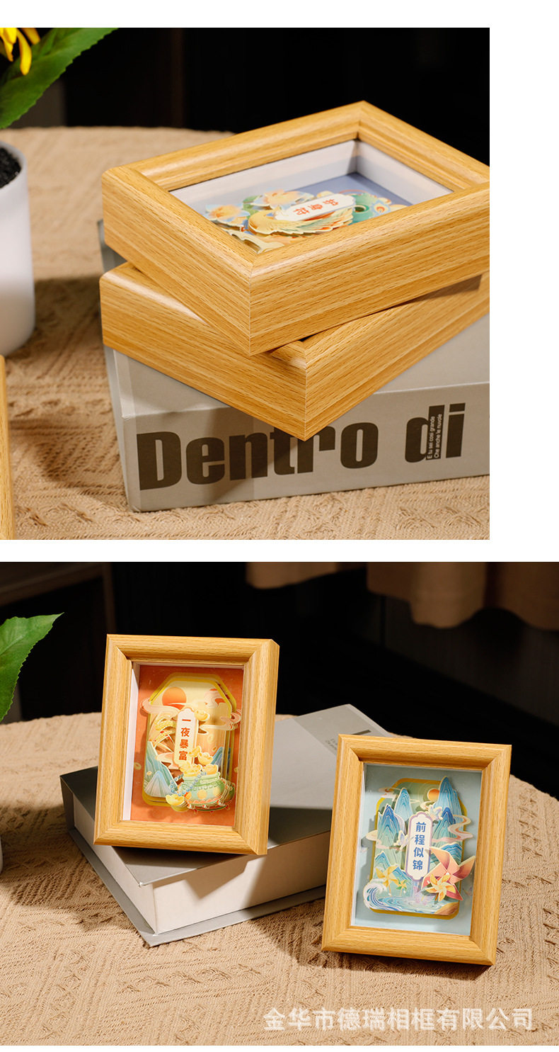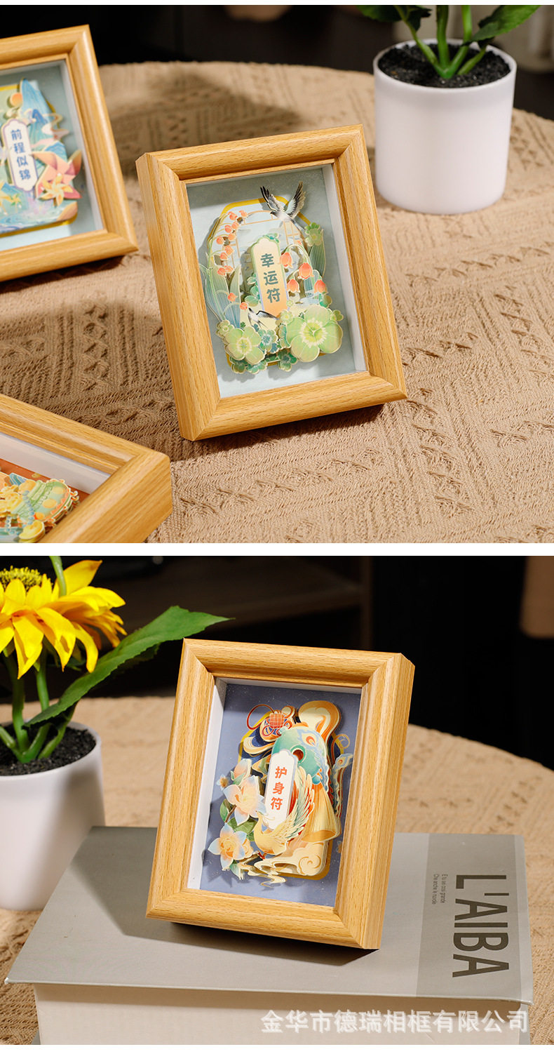 Mini Hollow Glass Surface Three-Dimensional Painting Chinese Style Mdf Wooden Photo Frame Sticker Display 7.5*10 Small Ornaments Wholesale