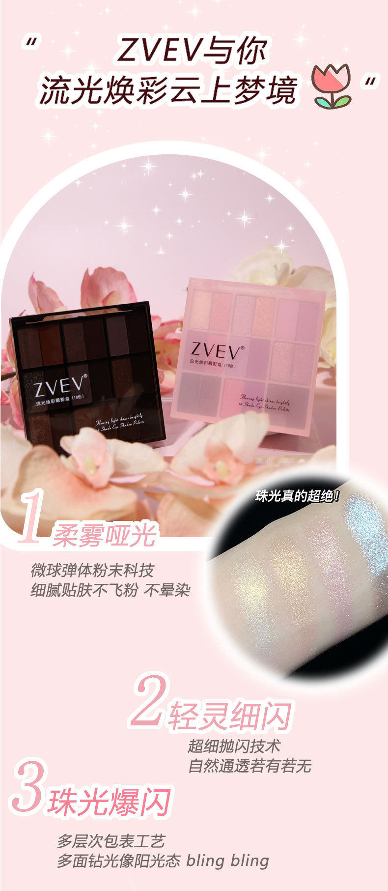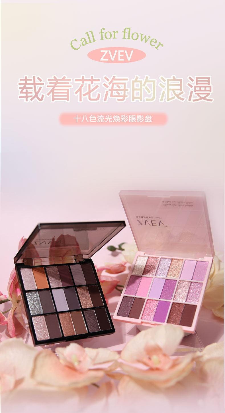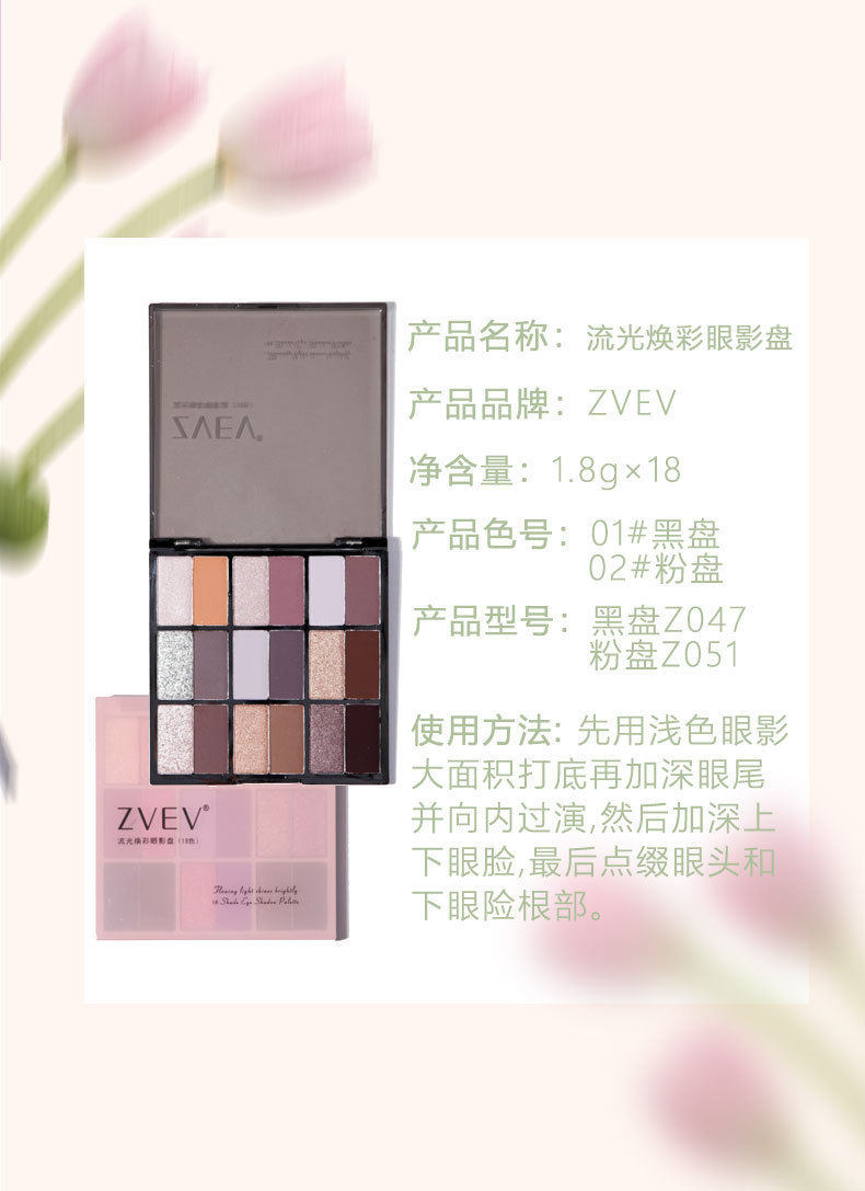 ZVEV 18-color streamer glowing color eyeshadow plate pearlescent matte fine flash low saturation silty delicate eyeshadow beginner