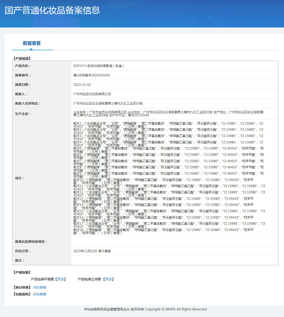 | Production license number | Cantonese makeup 20170544 |