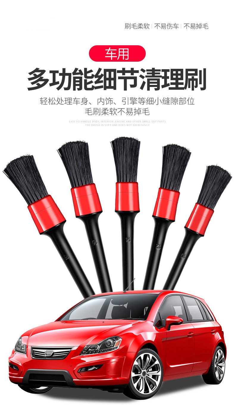 Car Interior Cleaning Brush 5-Piece Set Wheel Hub Beauty Care Gap Round Head Brush Car Wash Multi-Function Detail Brush