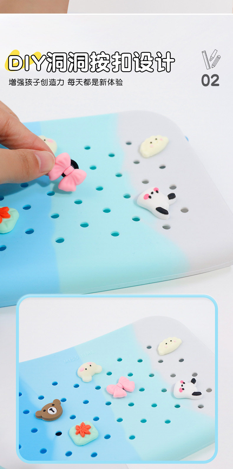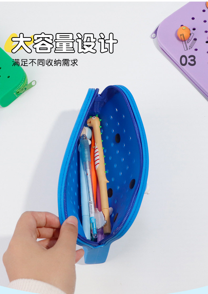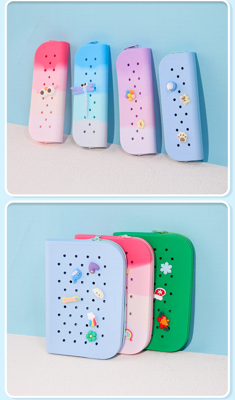 DIY Cute Silicone Hole Pencil Bag Student Large Capacity Stationery Box Pencil Bag Casual Stationery Storage Bag Wholesale