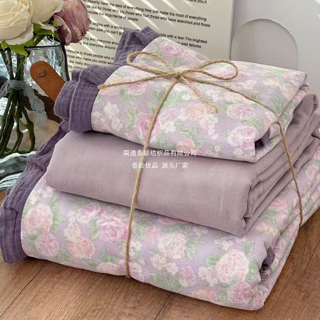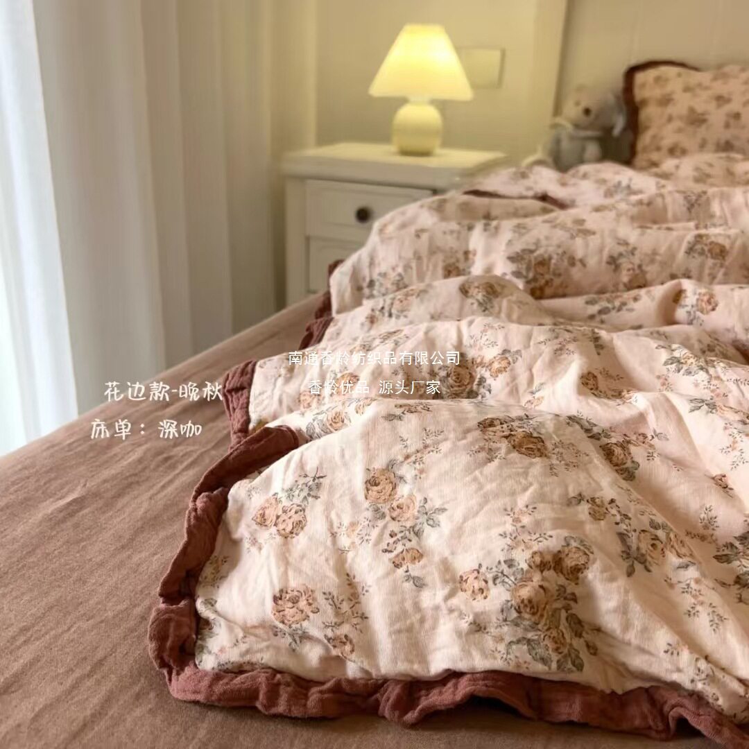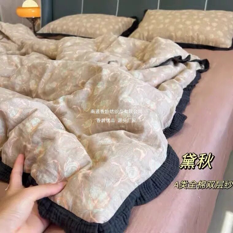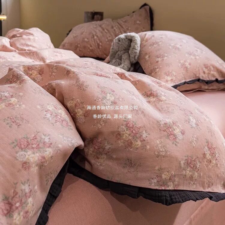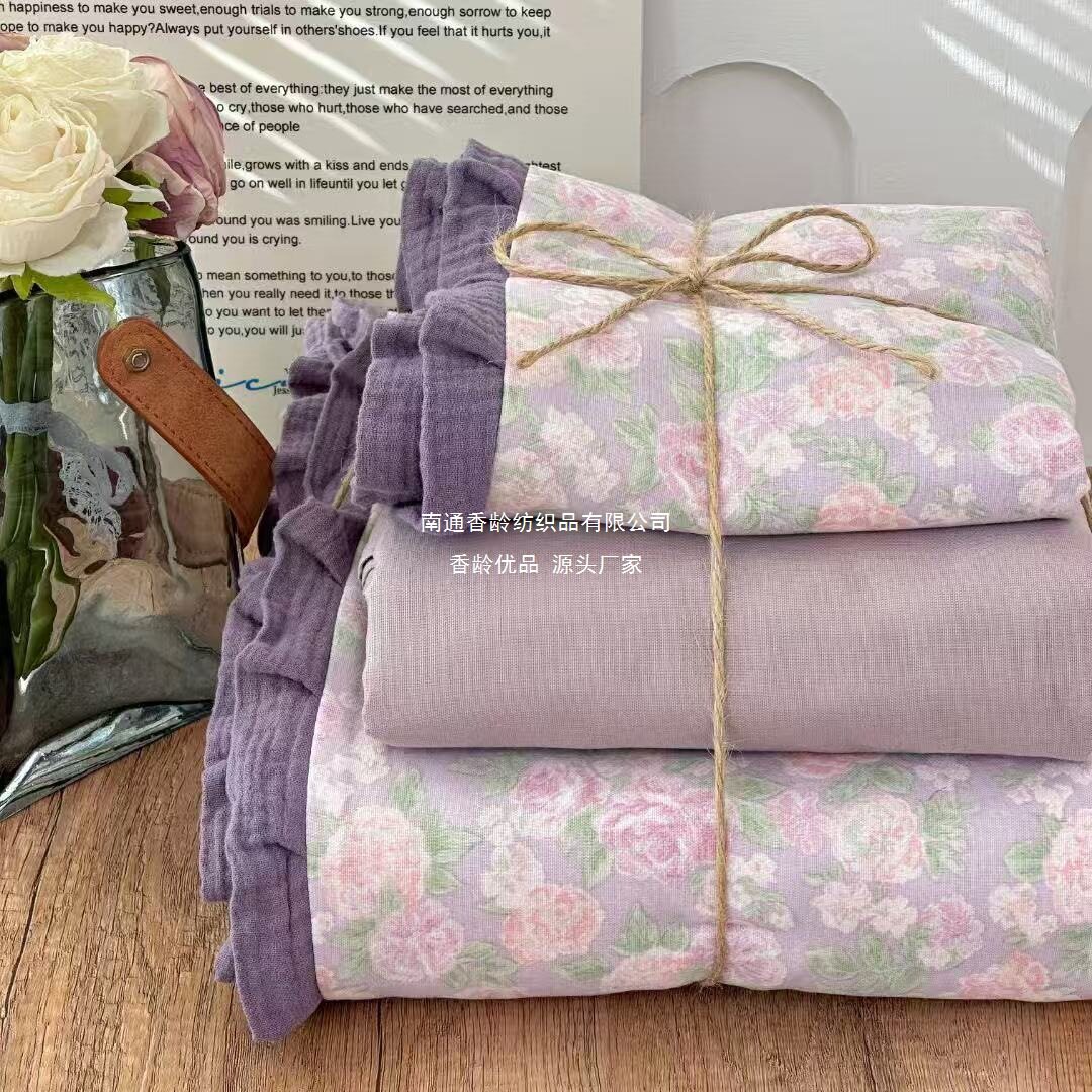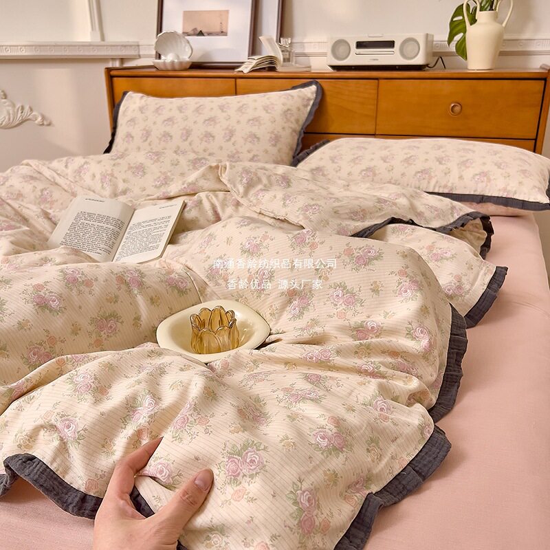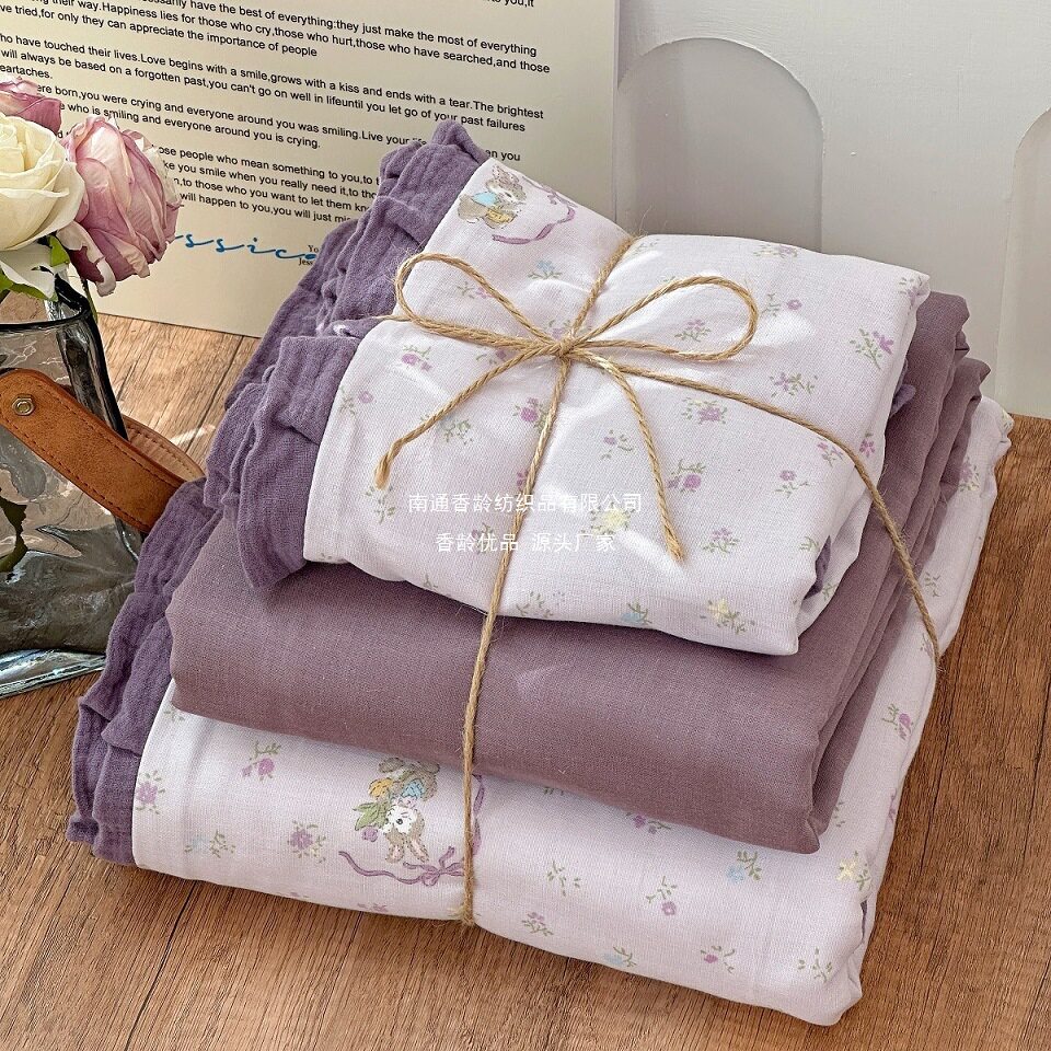 French-Style All-Cotton Double-Layer Gauze Ruffle Four-Piece Set, Class a Maternal and Infant Pure Cotton Gauze Student Dormitory Three-Piece Set Wholesale