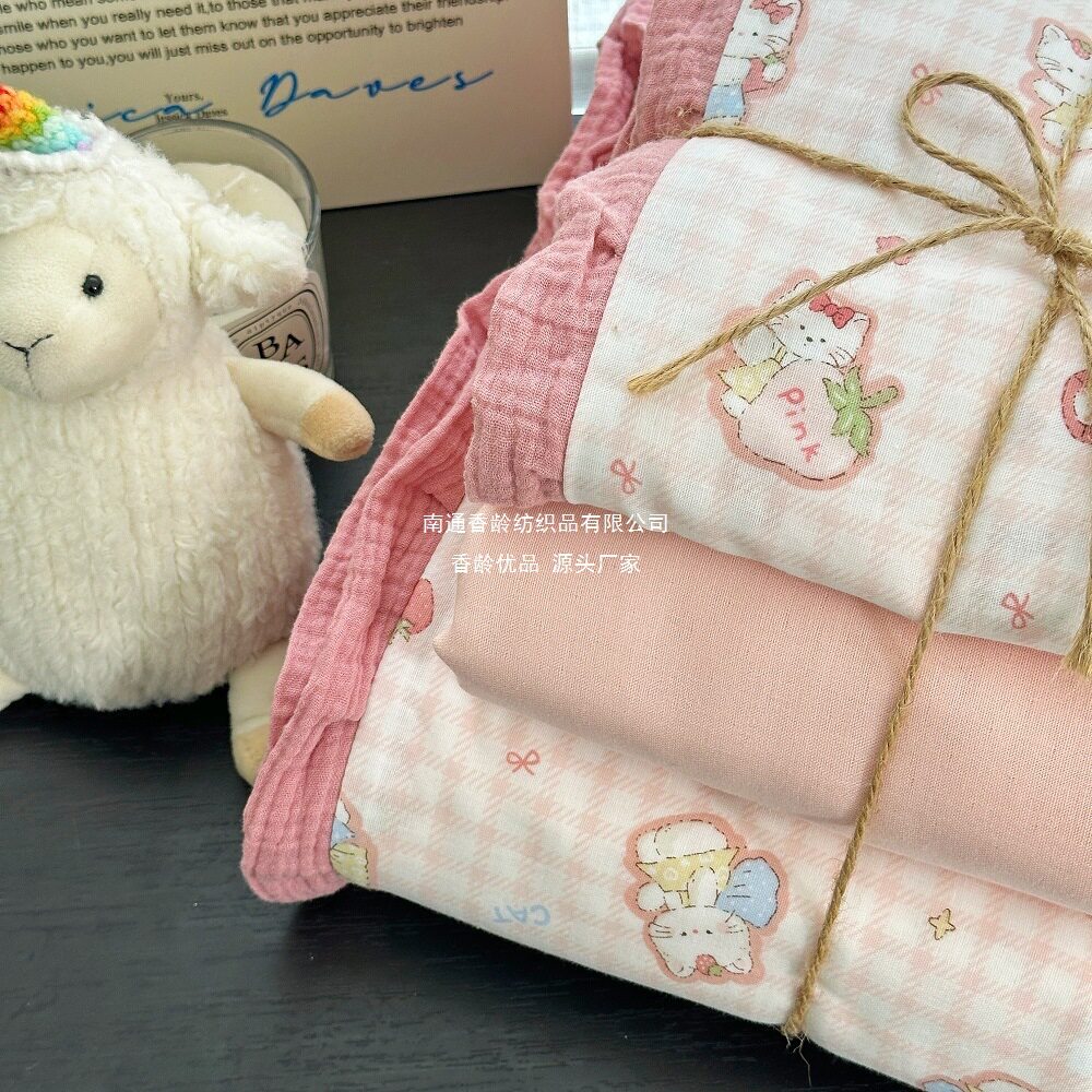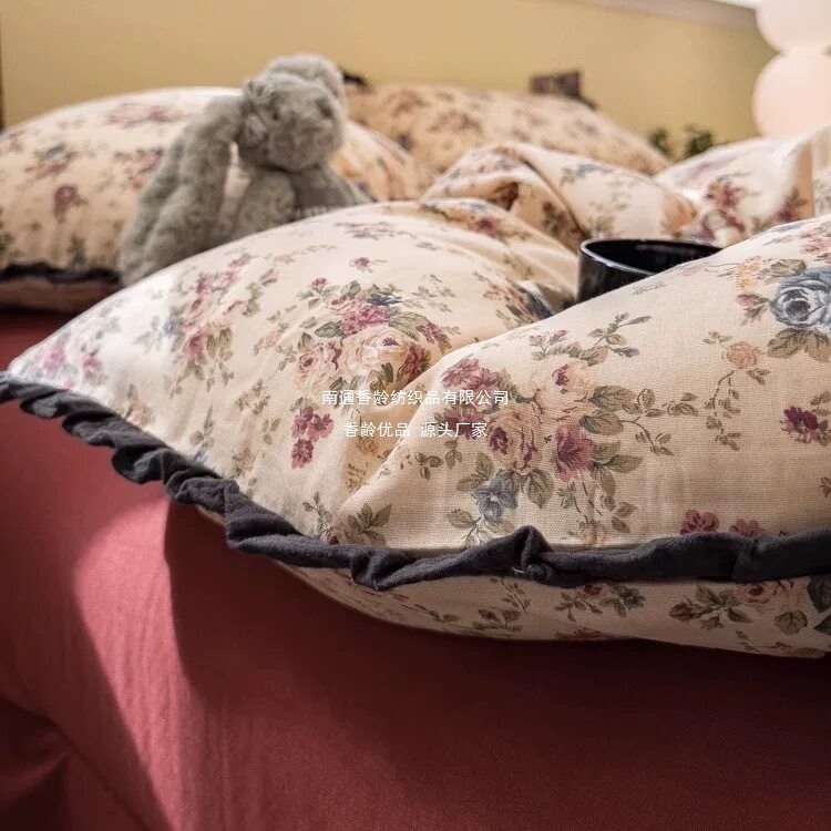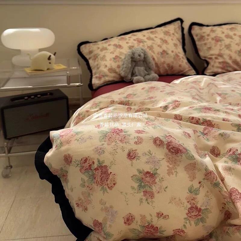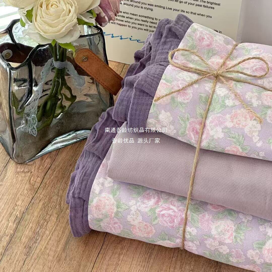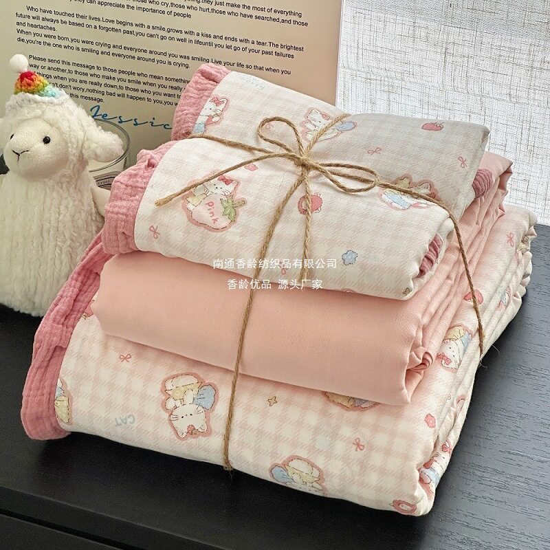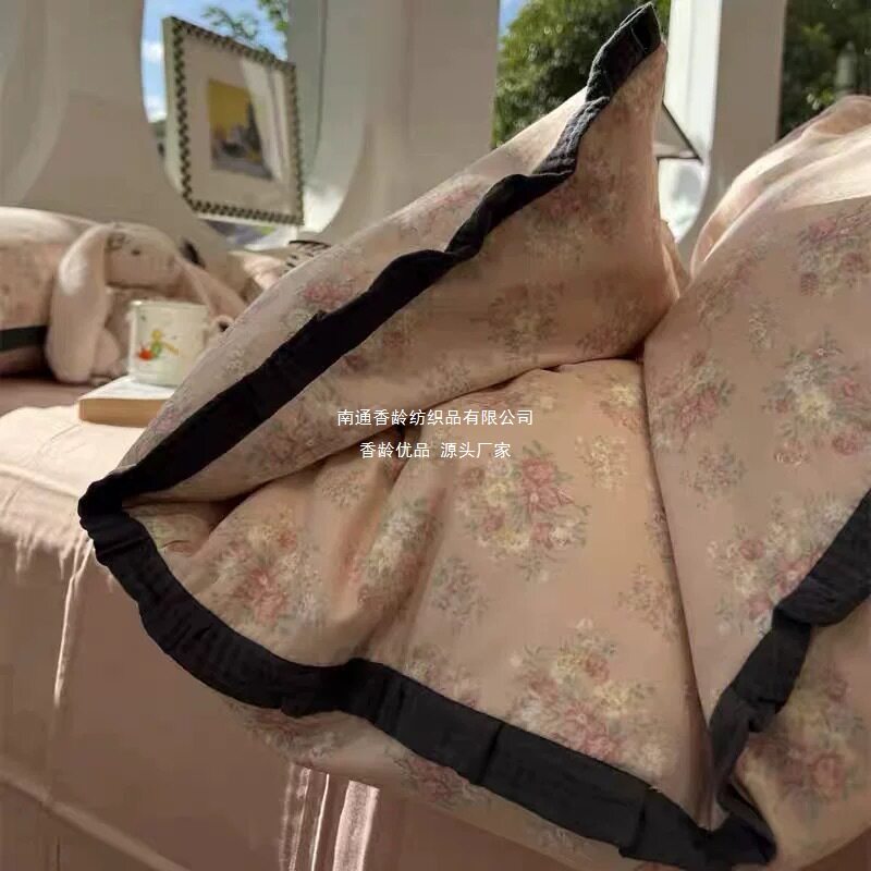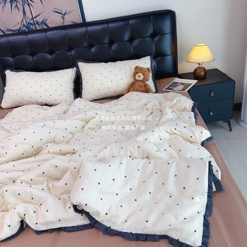 French-Style All-Cotton Double-Layer Gauze Ruffle Four-Piece Set, Class a Maternal and Infant Pure Cotton Gauze Student Dormitory Three-Piece Set Wholesale