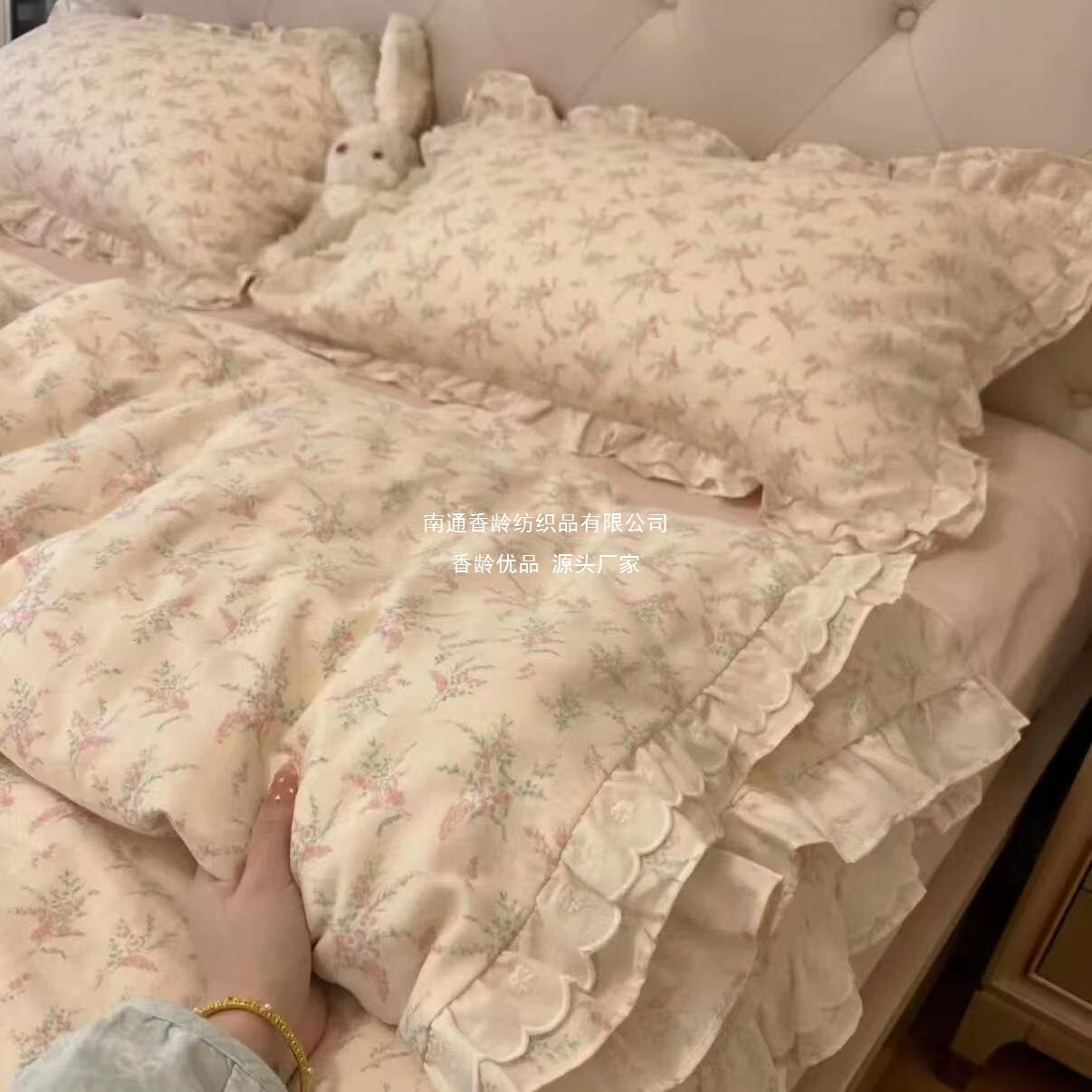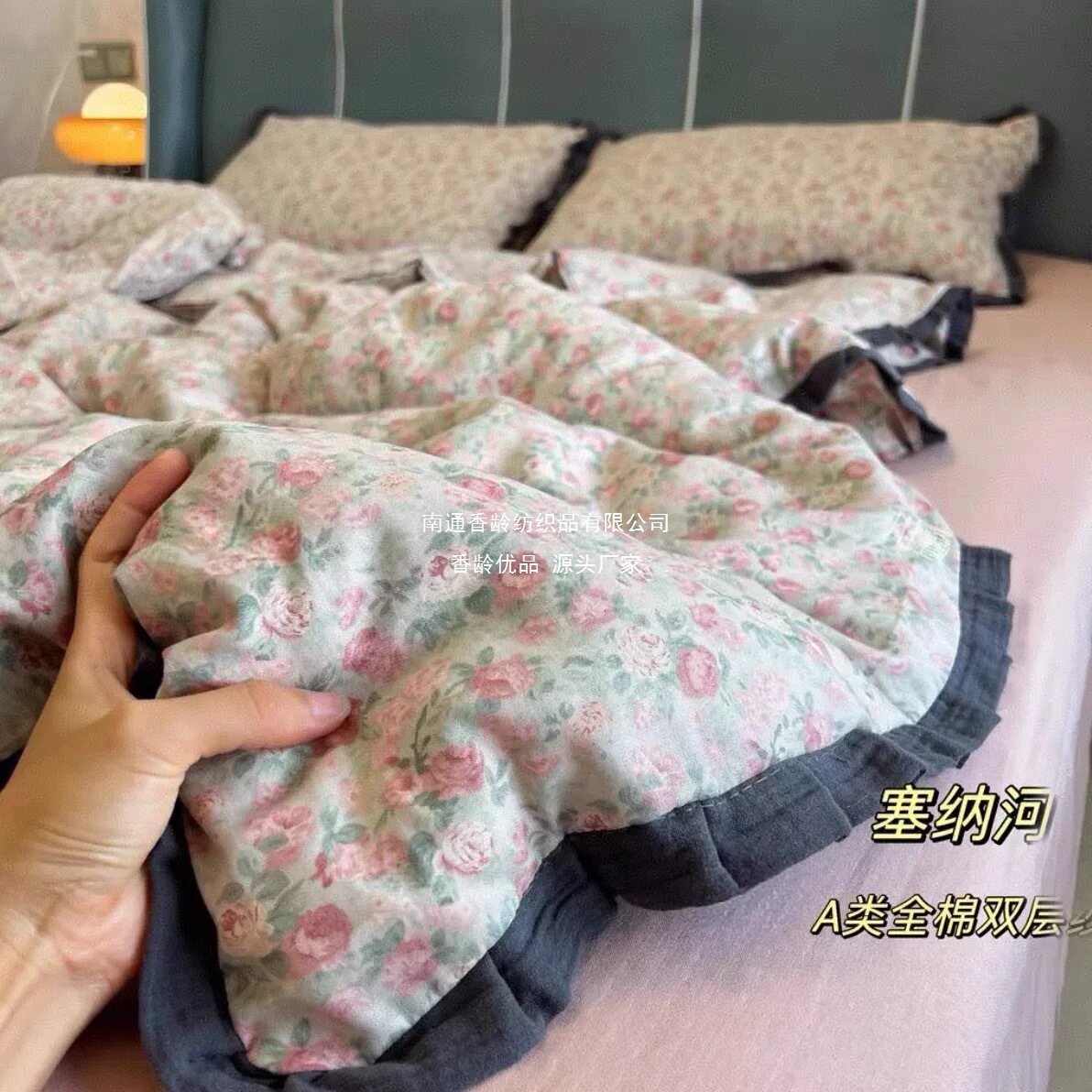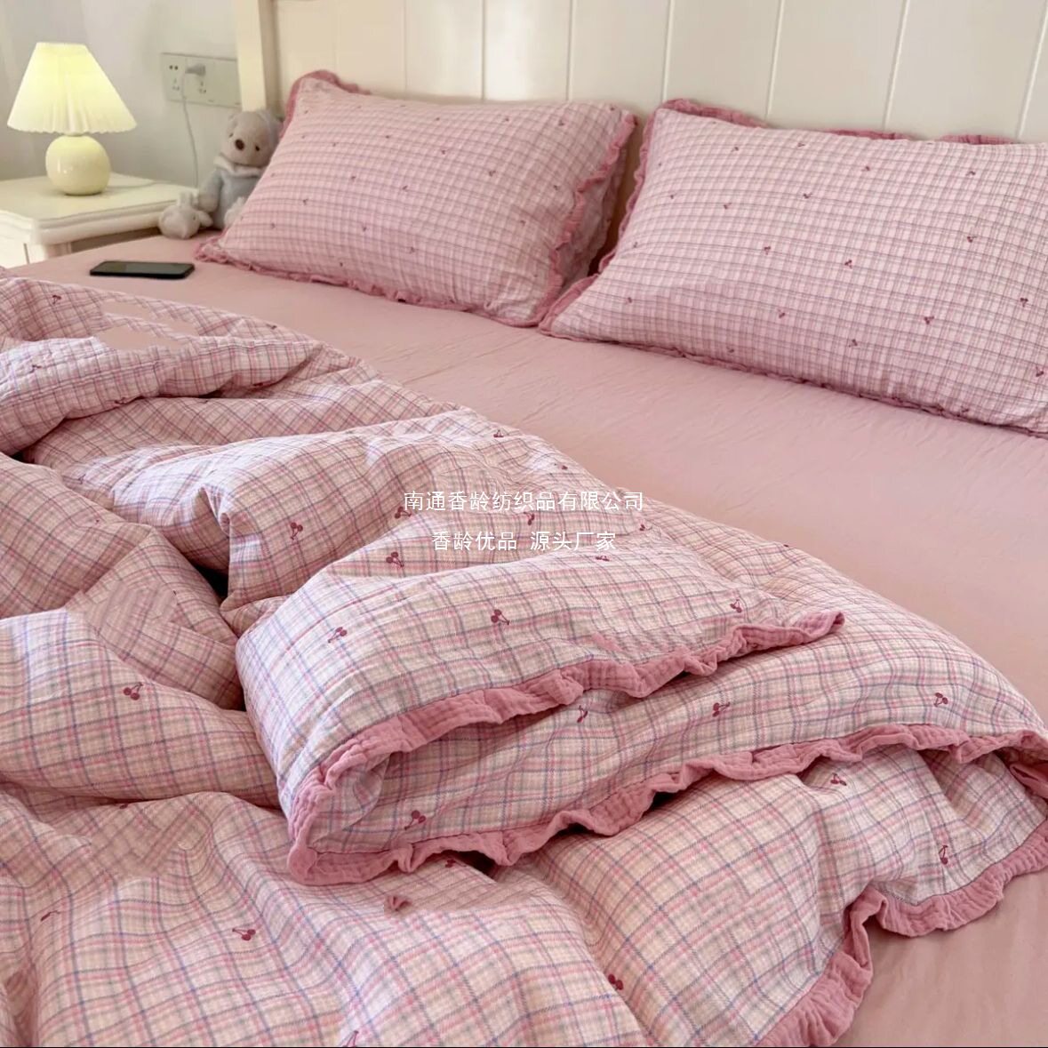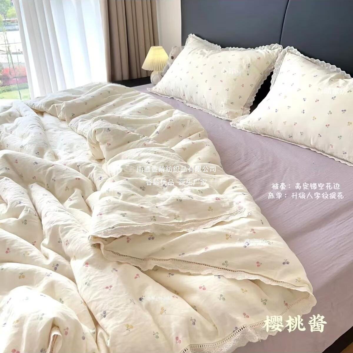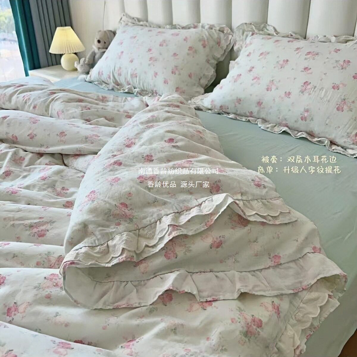 French-Style All-Cotton Double-Layer Gauze Ruffle Four-Piece Set, Class a Maternal and Infant Pure Cotton Gauze Student Dormitory Three-Piece Set Wholesale