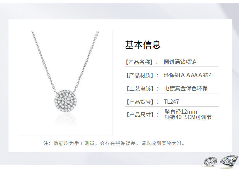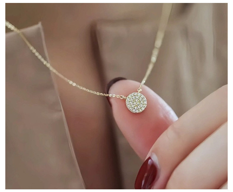 | Color | Full diamond round necklace (gold color) plated with real gold to preserve color and environmentally friendly,Full diamond round necklace (white gold) plated with real gold to preserve color and environmentally friendly |