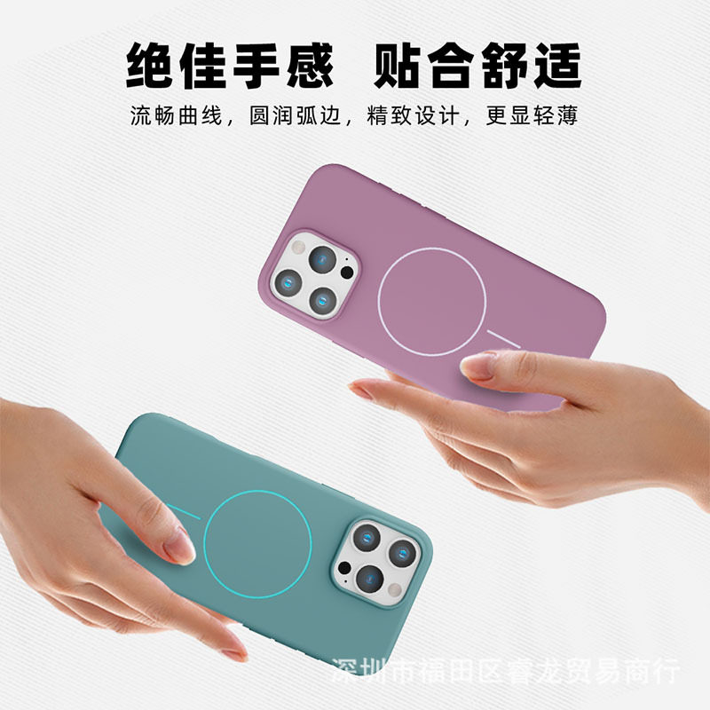 Thin Circle Magnetic Phone Case Suitable for Apple 15Promax Simple 16Pm Velvet 14 Anti-Fall 11/12 Protective Cover