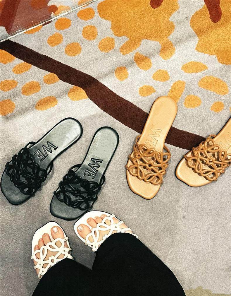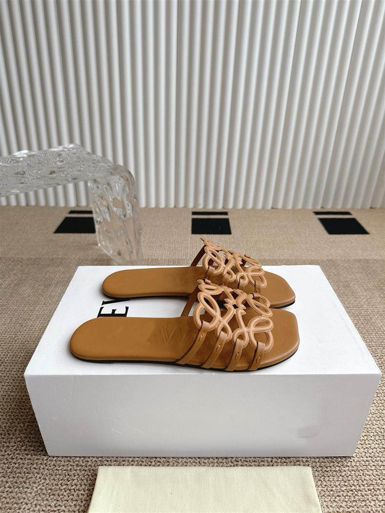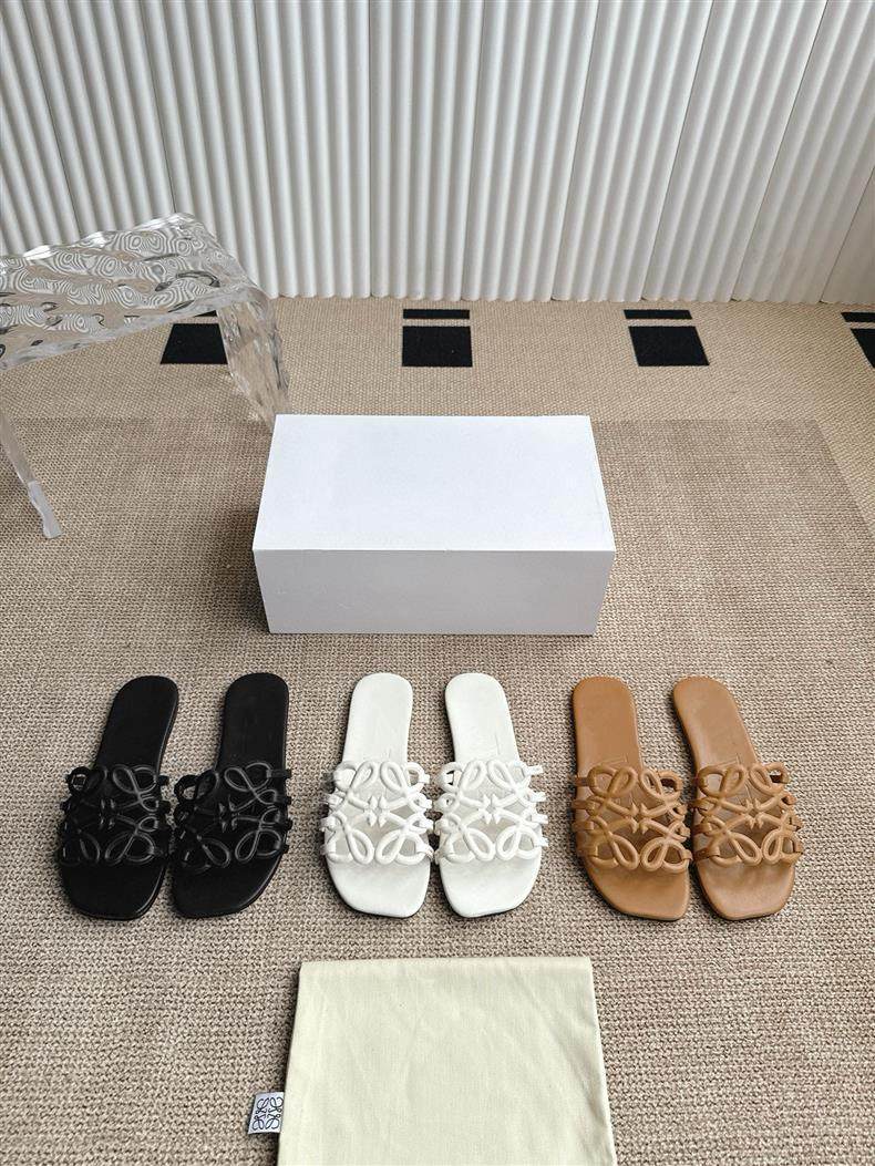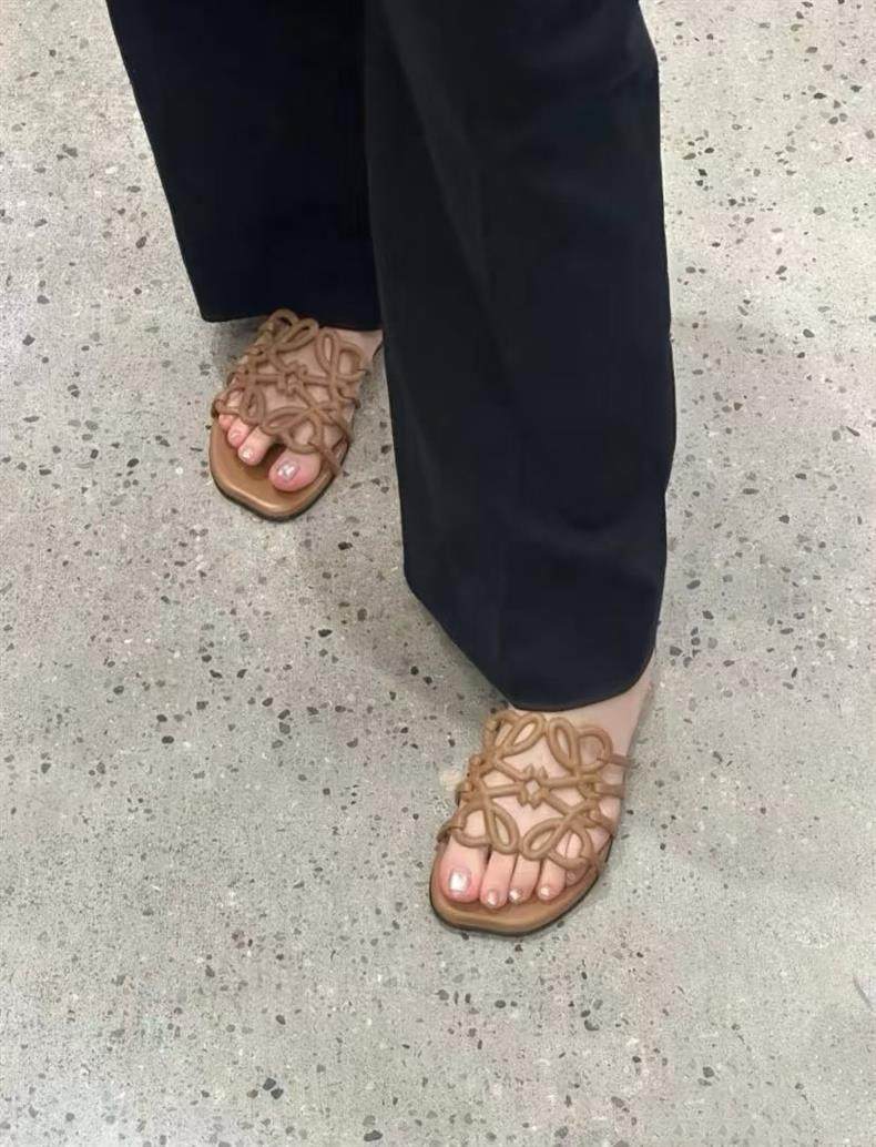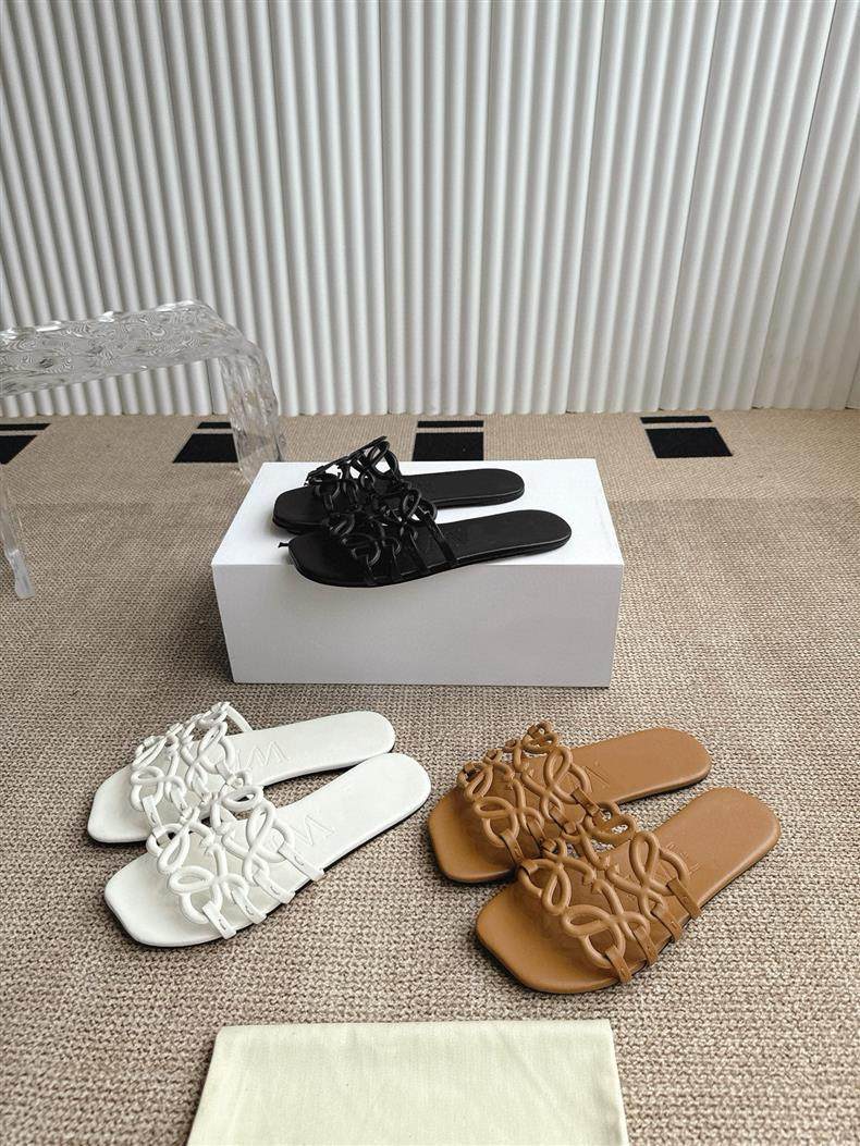 [Luojia Top Version] Cowhide Hollow Sandals Women's Summer Flat Slippers Fashionable and Easiest for Match Casual Beach Shoes