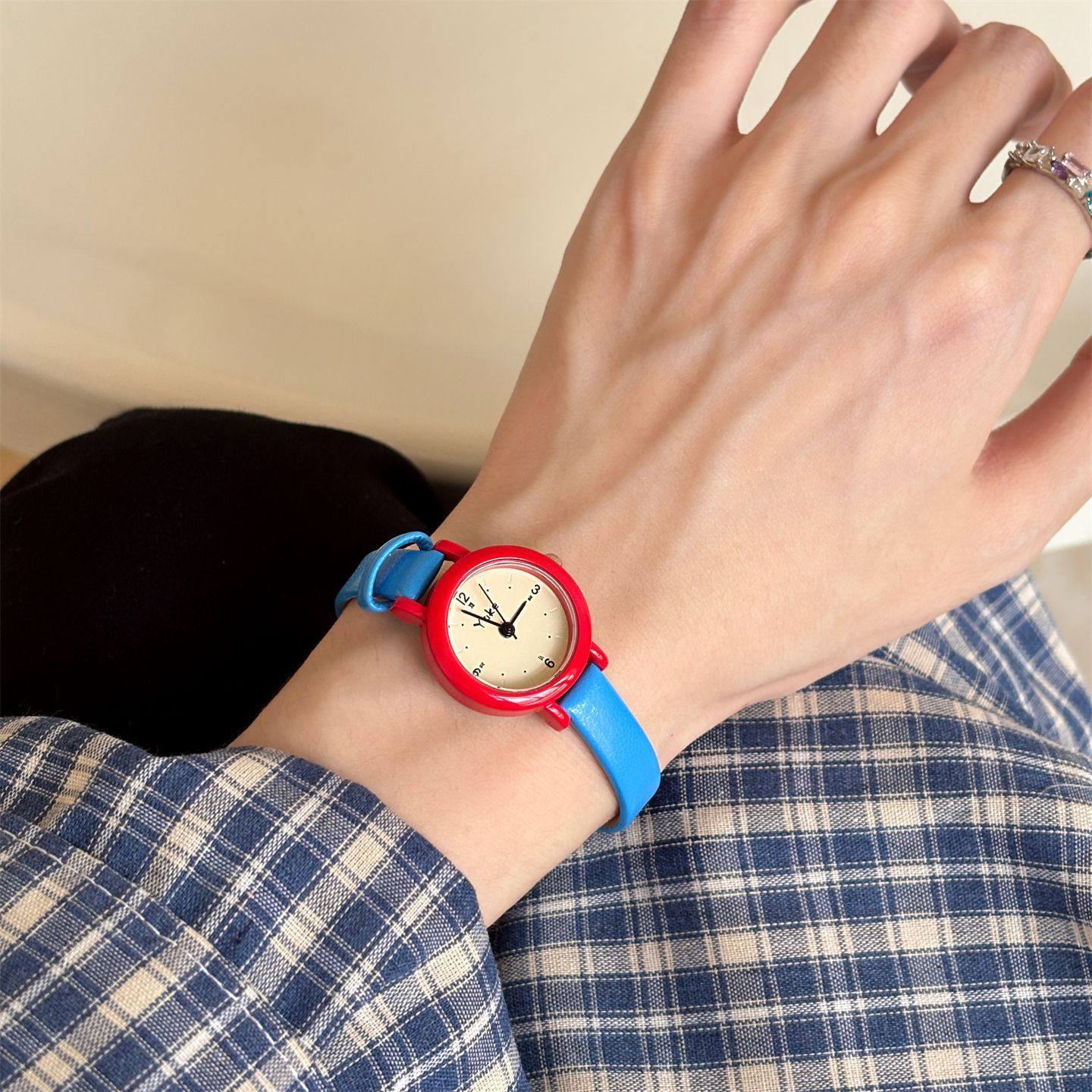 Dopamine Contrasting Color Watch for Women, Student Niche, High-Looking Digital Scale, Round Small Dial, Women's Watch
