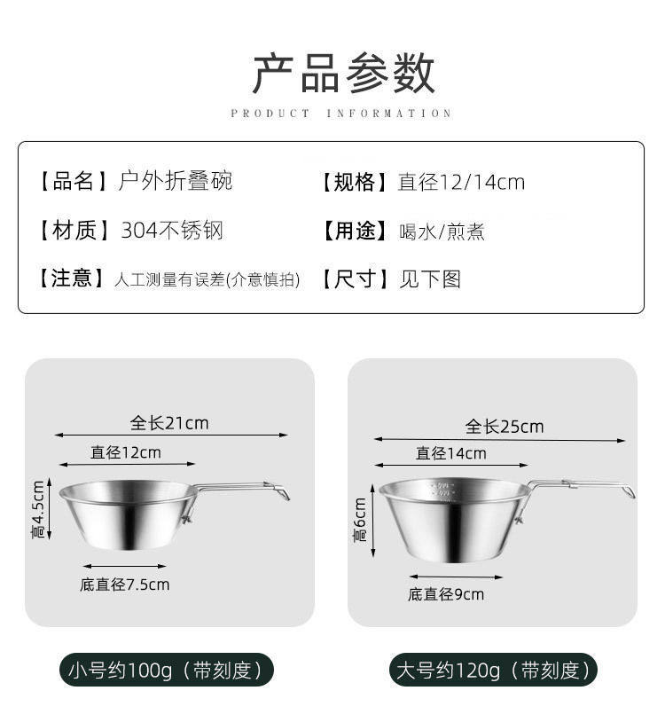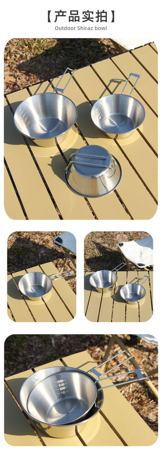 Outdoor Camping Folding Sierra Bowl Portable Tableware 304 Stainless Steel Camping Coffee Cup Instant Noodle Bowl Rice Bowl Cookware