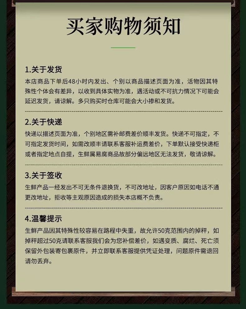 | Packaging specifications | 0.75kg -- 0.9kg green and yellow soft-shell turtle,0.75kg -- 0.9kg wild-raised yellow river male turtle,0.9kg-1.0kg wild-bred high-quality yellow river male turtle,1.05kg -- 1.15kg green and yellow soft-shell turtle,1.05kg -- 1.15kg wild-breeded yellow river male soft-shell turtle,1.2kg -- 1.3kg green and yellow soft-shell turtle,1.2kg -- 1.35kg wild-breeded yellow river male soft-shell turtle,1.4kg-1.5kg green and yellow back turtle,1.4kg-1.5kg wild-bred high-quality yellow river male turtle,1.5kg-1.7kg green and yellow back turtle,1.55kg -- 1.65kg wild-breeded yellow river male soft-shell turtle,1.75kg -- 1.9kg green and yellow soft-shell turtle,1.75kg -- 1.9kg wild-breeded yellow river male soft-shell turtle,1.95kg -- 2.05kg wild-breeded yellow river male soft-shell turtle,2.05kg -- 2.2kg wild-breeded yellow river male soft-shell turtle,2.25kg -- 2.4kg wild-breeded yellow river male soft-shell turtle,2.5kg-2.6kg wild-bred high-quality yellow river male turtle,2.75kg -- 2.95kg wild-breeded yellow river male soft-shell turtle,3kg-3.1kg a fine male turtle raised in the wild,0.55kg-0.65kg wild-breeded high-quality yellow river soft-shell turtle,4. jin-- 2.15kg one green and yellow female soft-shell turtle |