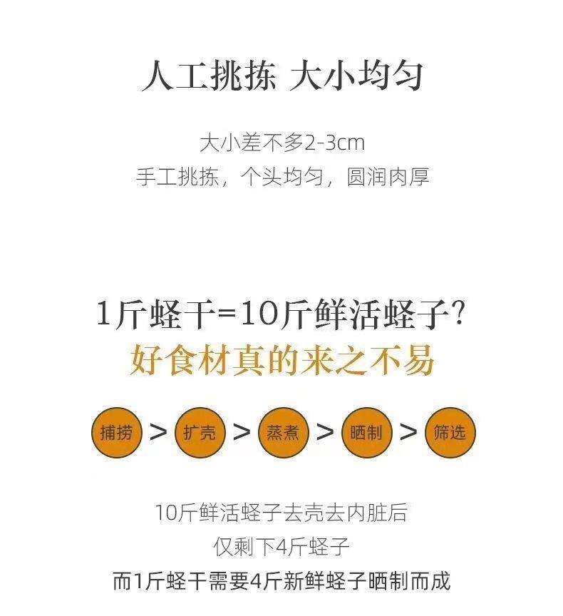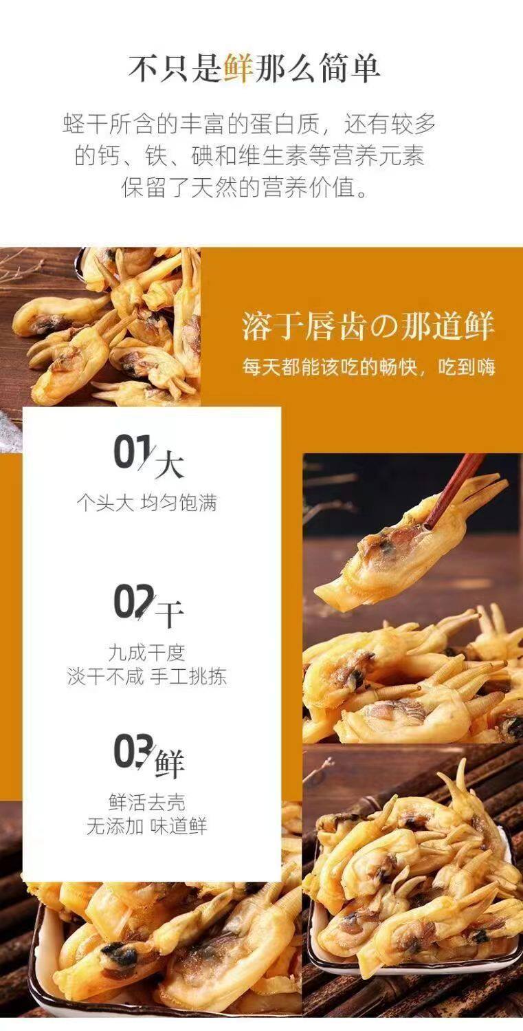 | Packaging specifications | [try the early version] dried cockles 50g,[best-selling model] dried cockles 250g,[affordable model] dried cockles 500g, high quality and sand-free |