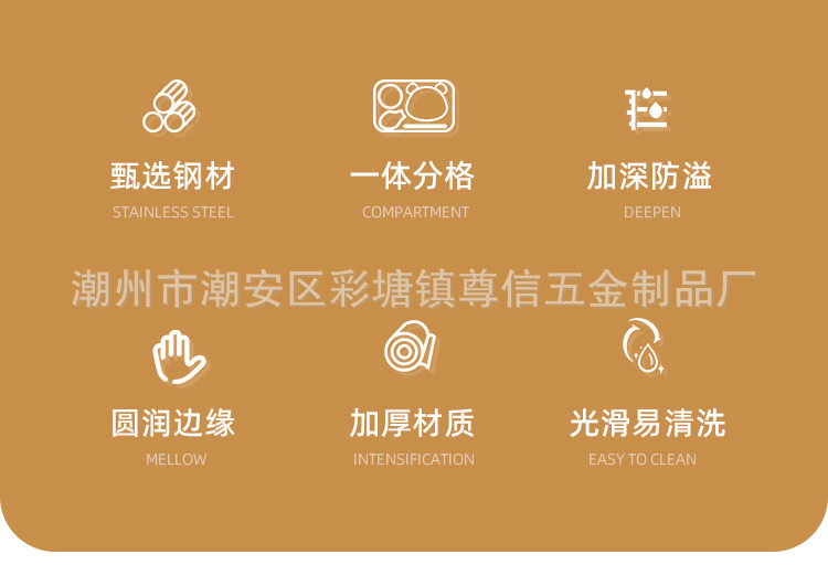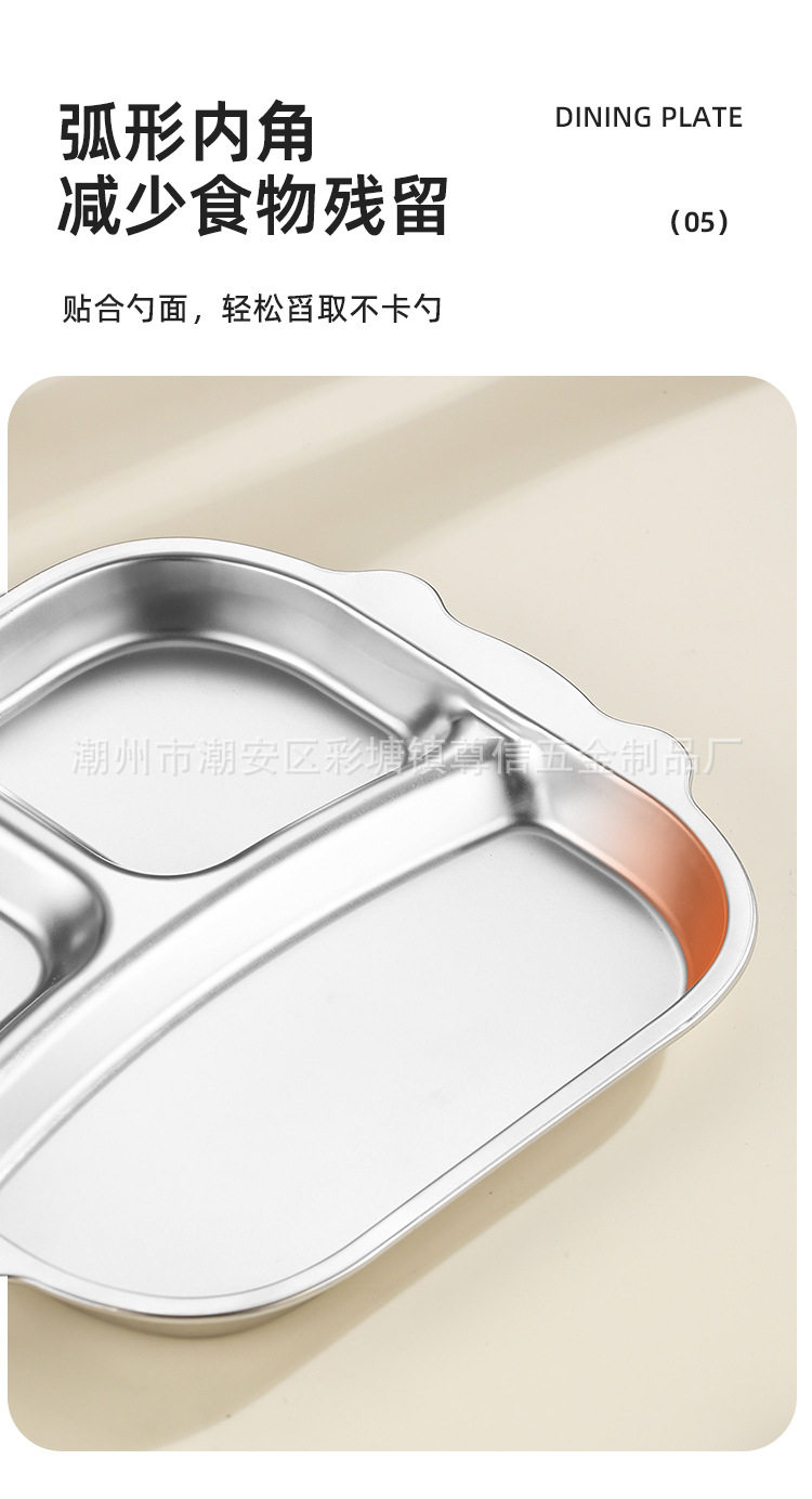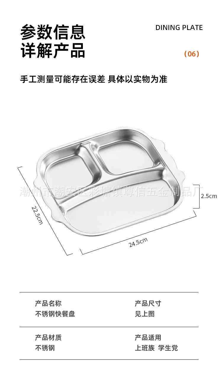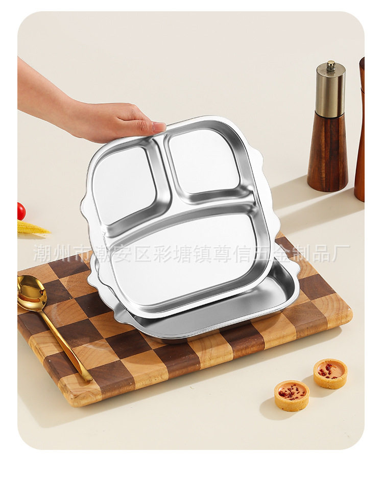 Temu Cross-Border Direct Sales 304 Stainless Steel Fat-Reducing Plate Double-Eared Square Three-Compartment Plate Household Quantitative Divided Meal Plate