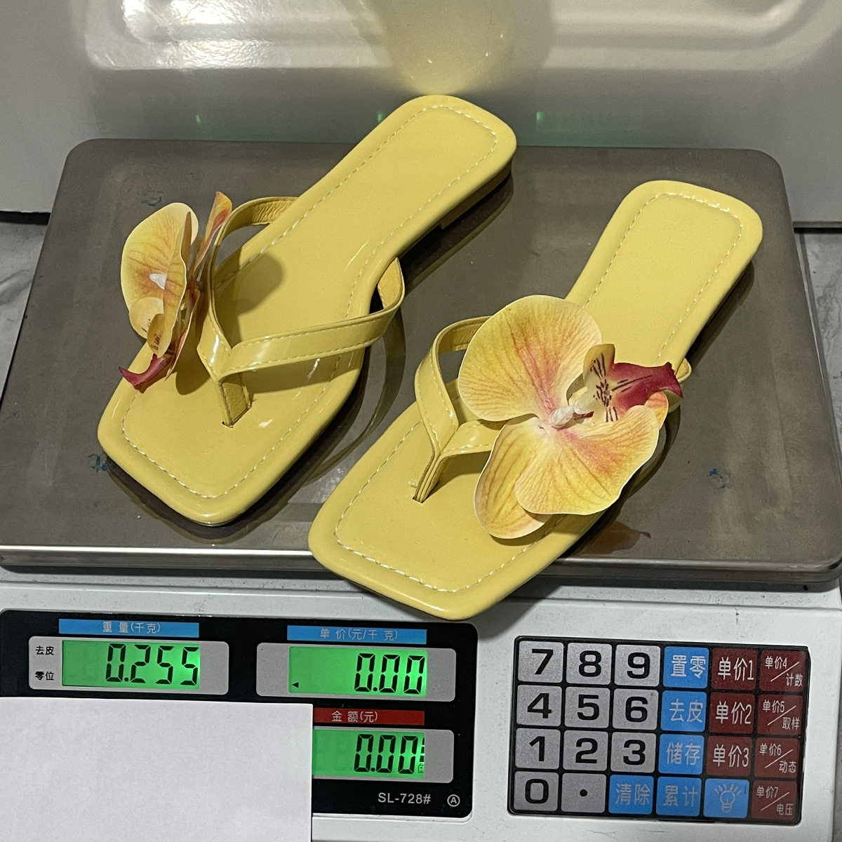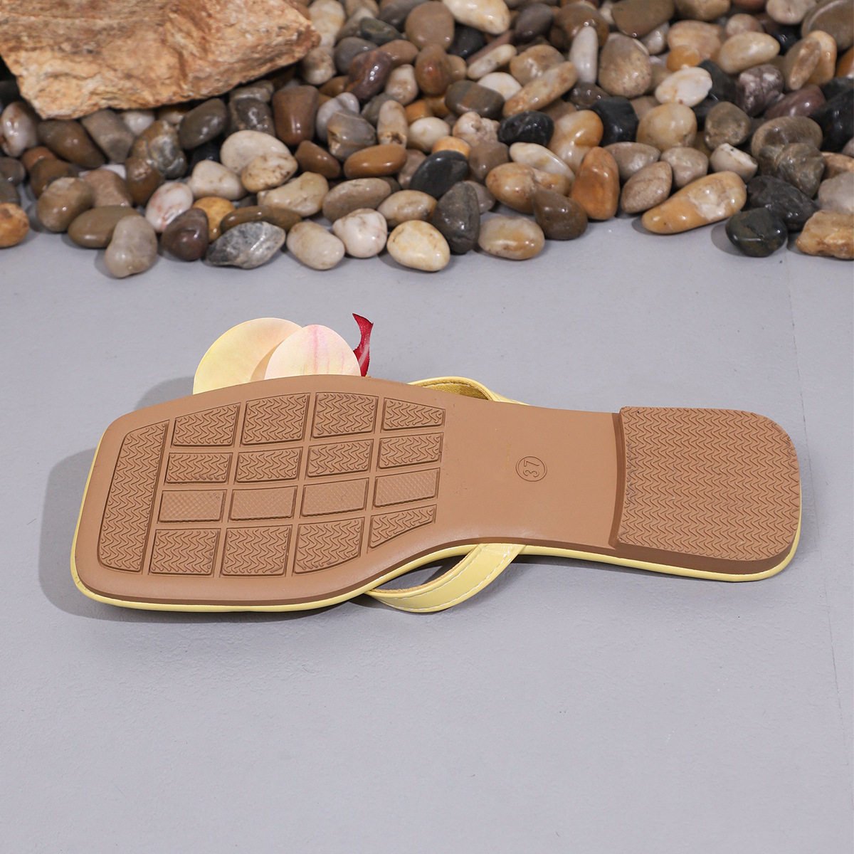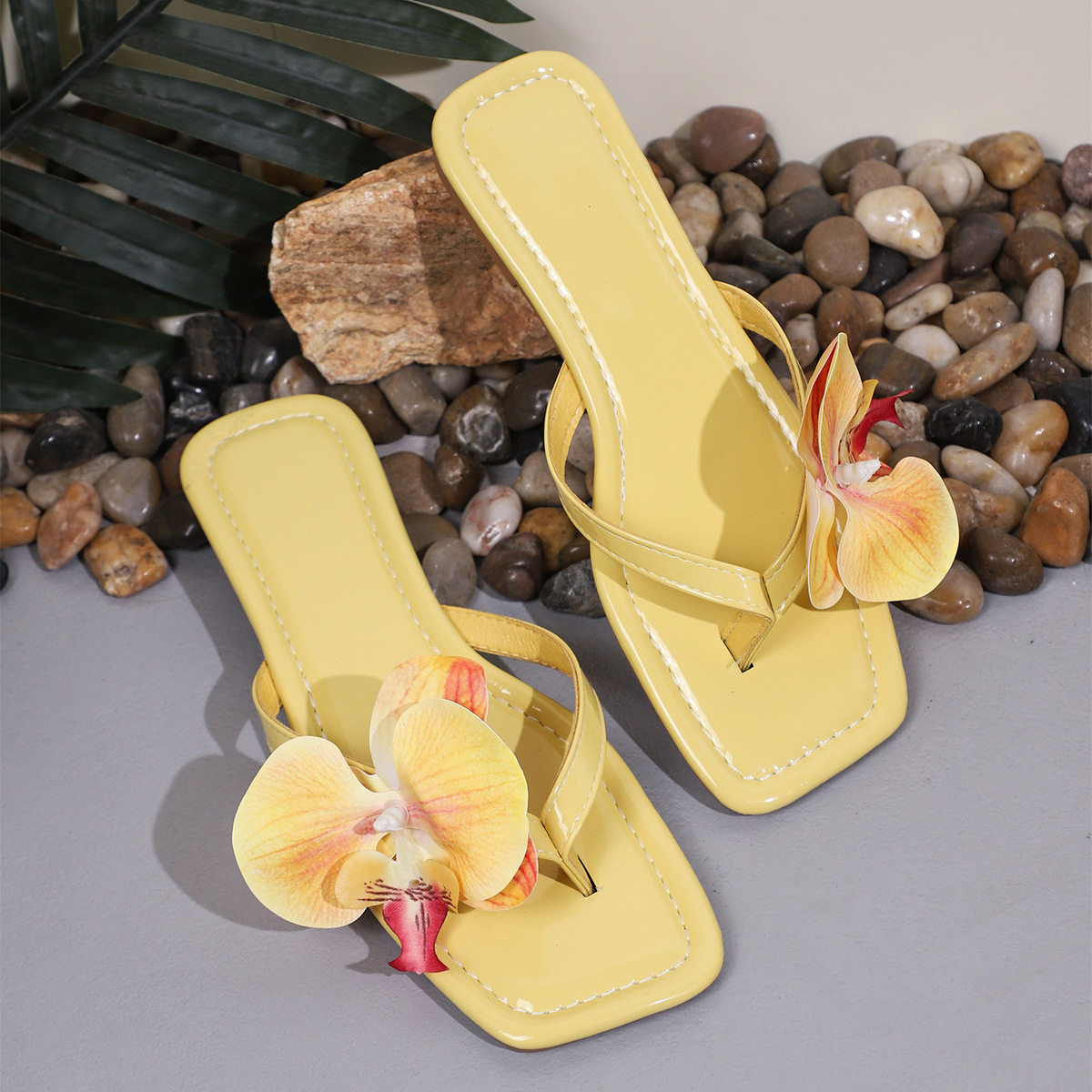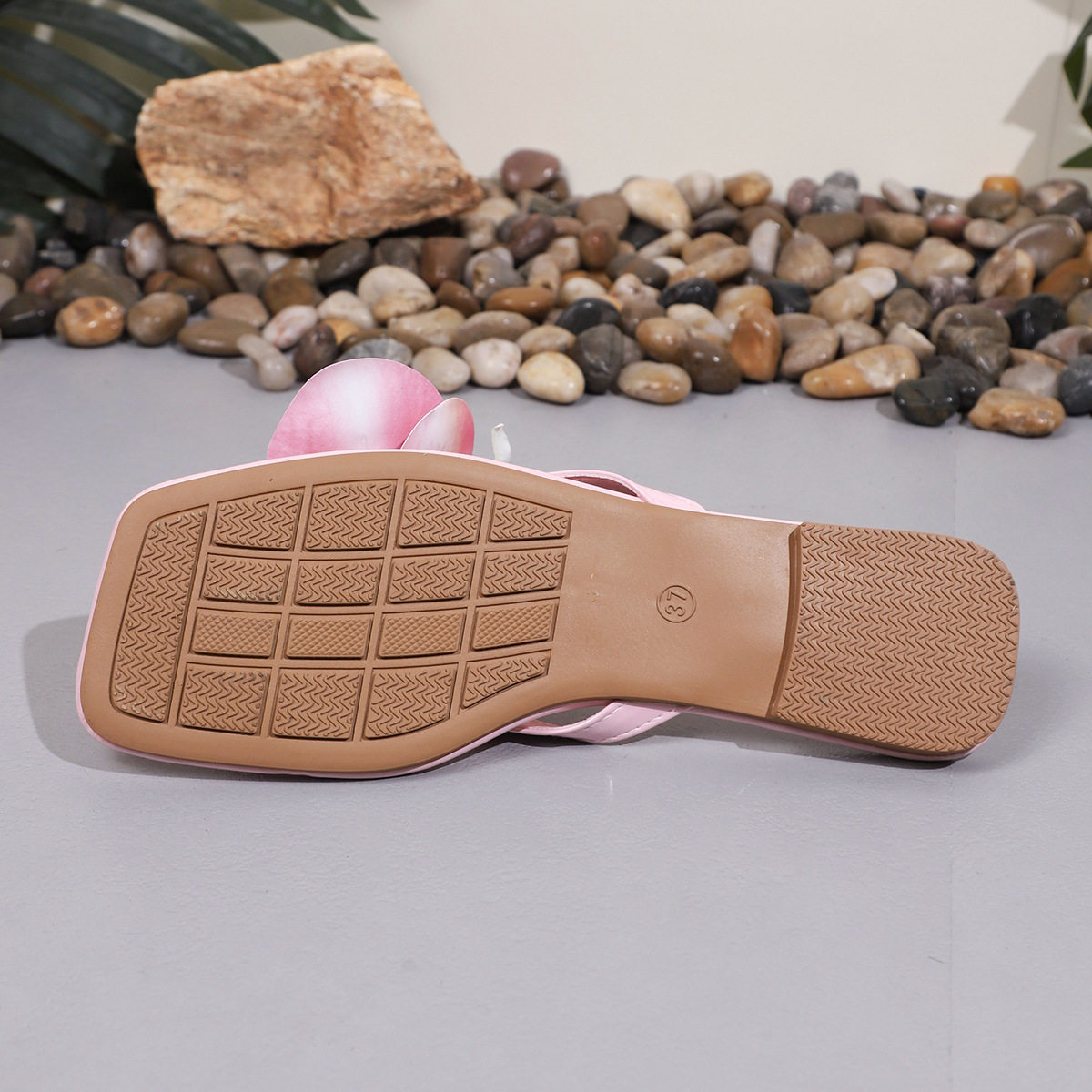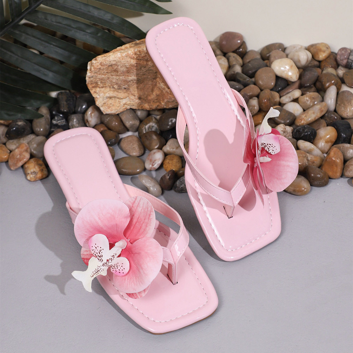 2025 Summer New Flower Fashion Square Toe Slippers Women's Large Size Flats Flip-Flops 43 Size Cross-Border Large Size Shoes
