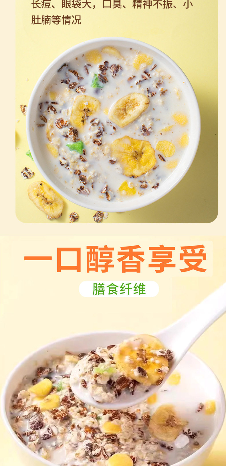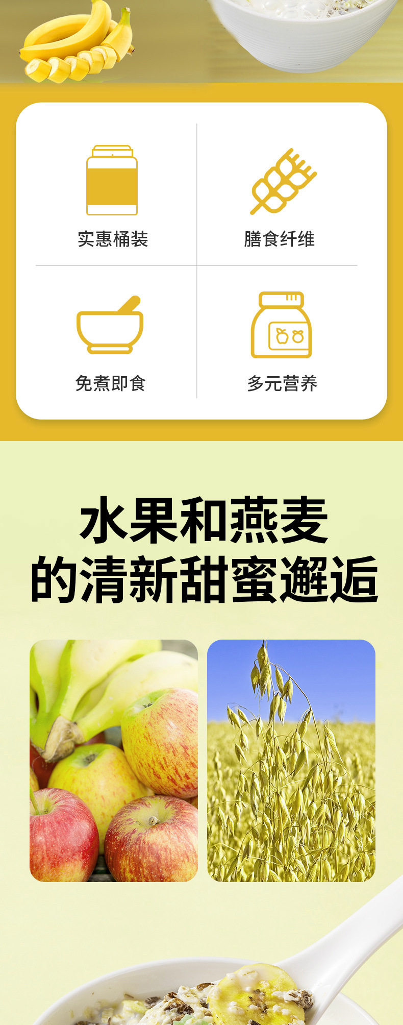 | Raw materials and ingredients | Fruit oatmeal banana |