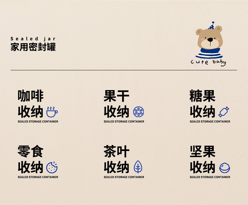 Coffee Bean Tea Sealed Jar Moisture-proof Desame Peel Storage Jar Food Grade Kitchen Storage Jar Grain Storage Jar