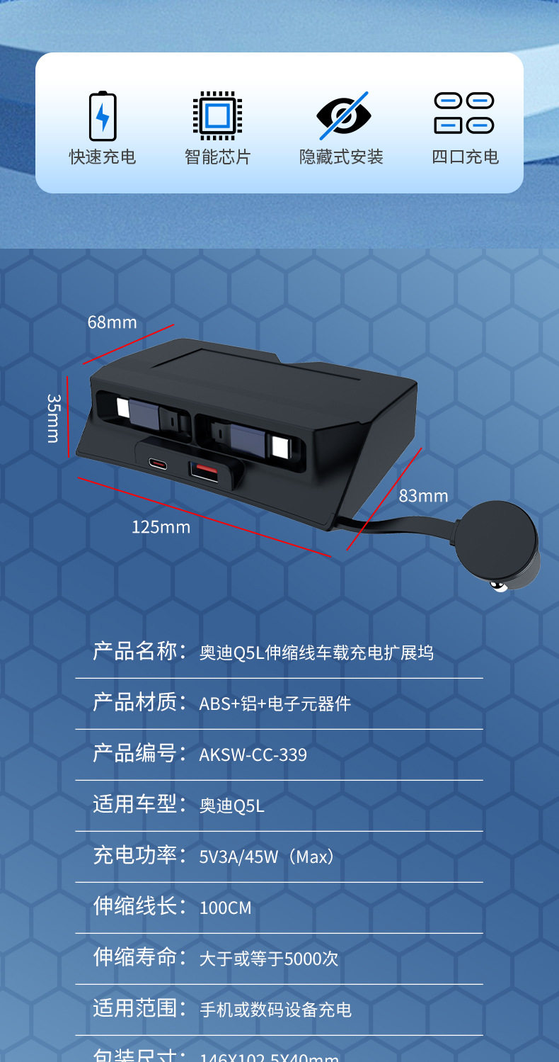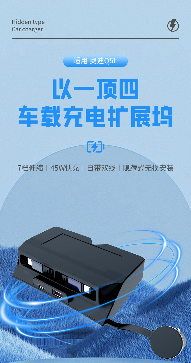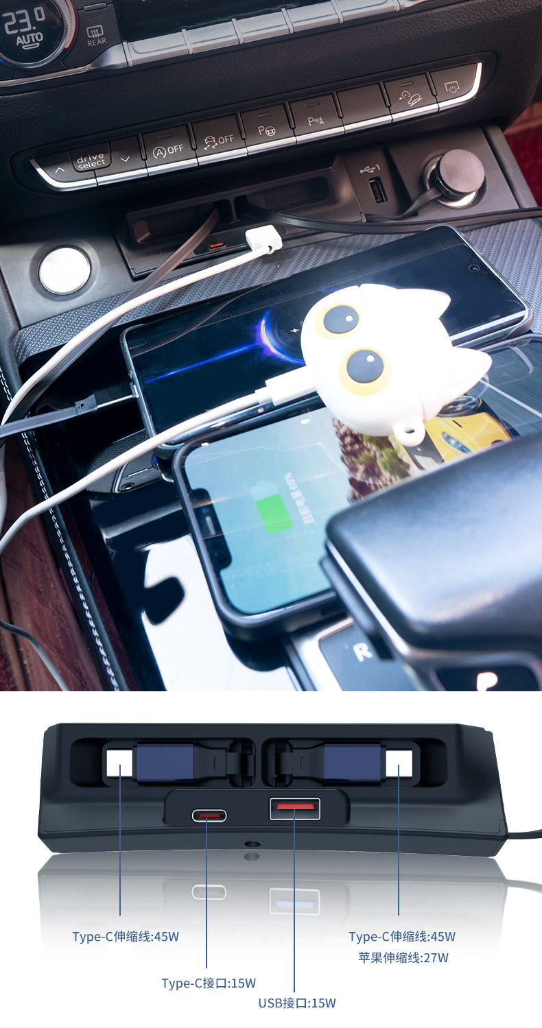Suitable for Audi Q5L Central Control Expansion Dock Car Charger Super Fast Charging Retractable Cable Modification Accessories Interior