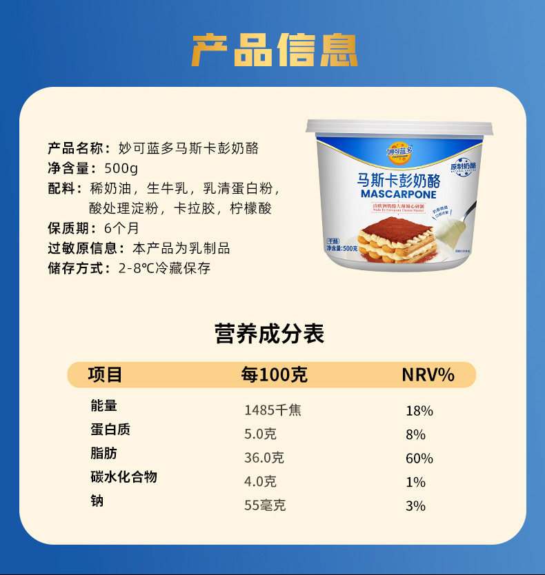 Free Shipping Miao Ke Lan Duo Mascarpone Cheese 500g Mascarpone Cheese Cheese Jilin All Year Round Commercial Use