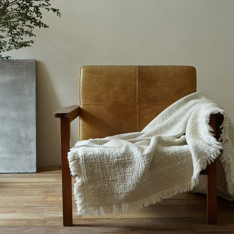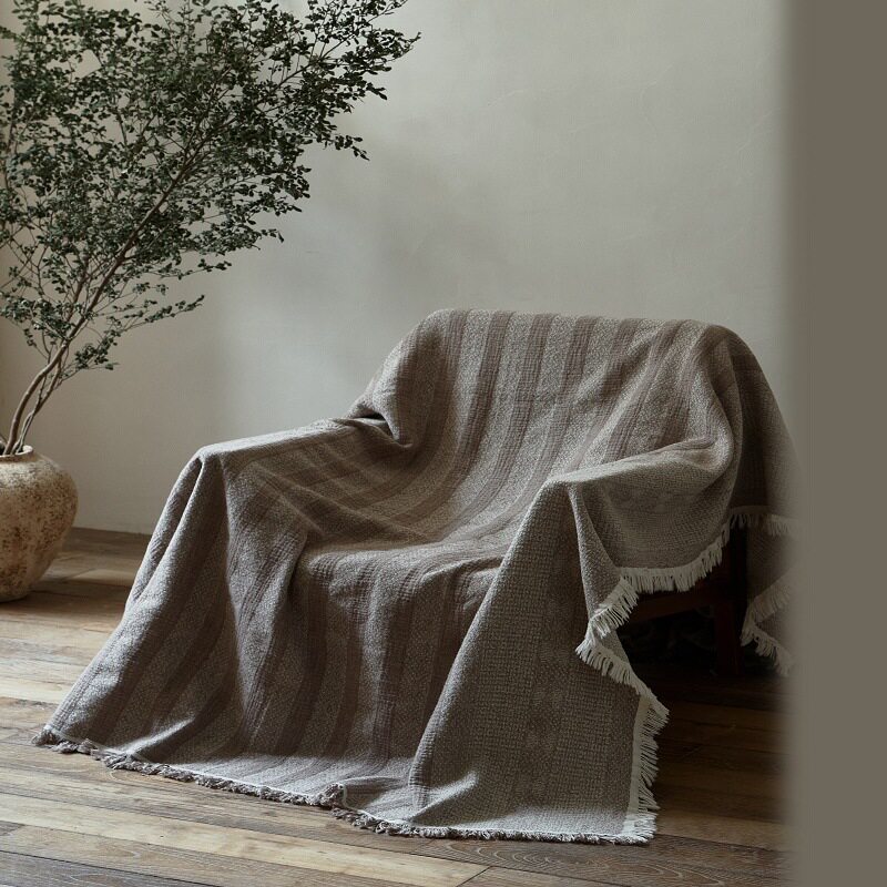 Retro Wabi-Sabi Style Cotton and Linen Strong Shrink Yarn-Dyed Jacquard Blanket Multi-Functional Nap Blanket Tassel Bed Sheet Cross-Border Foreign Trade Blanket