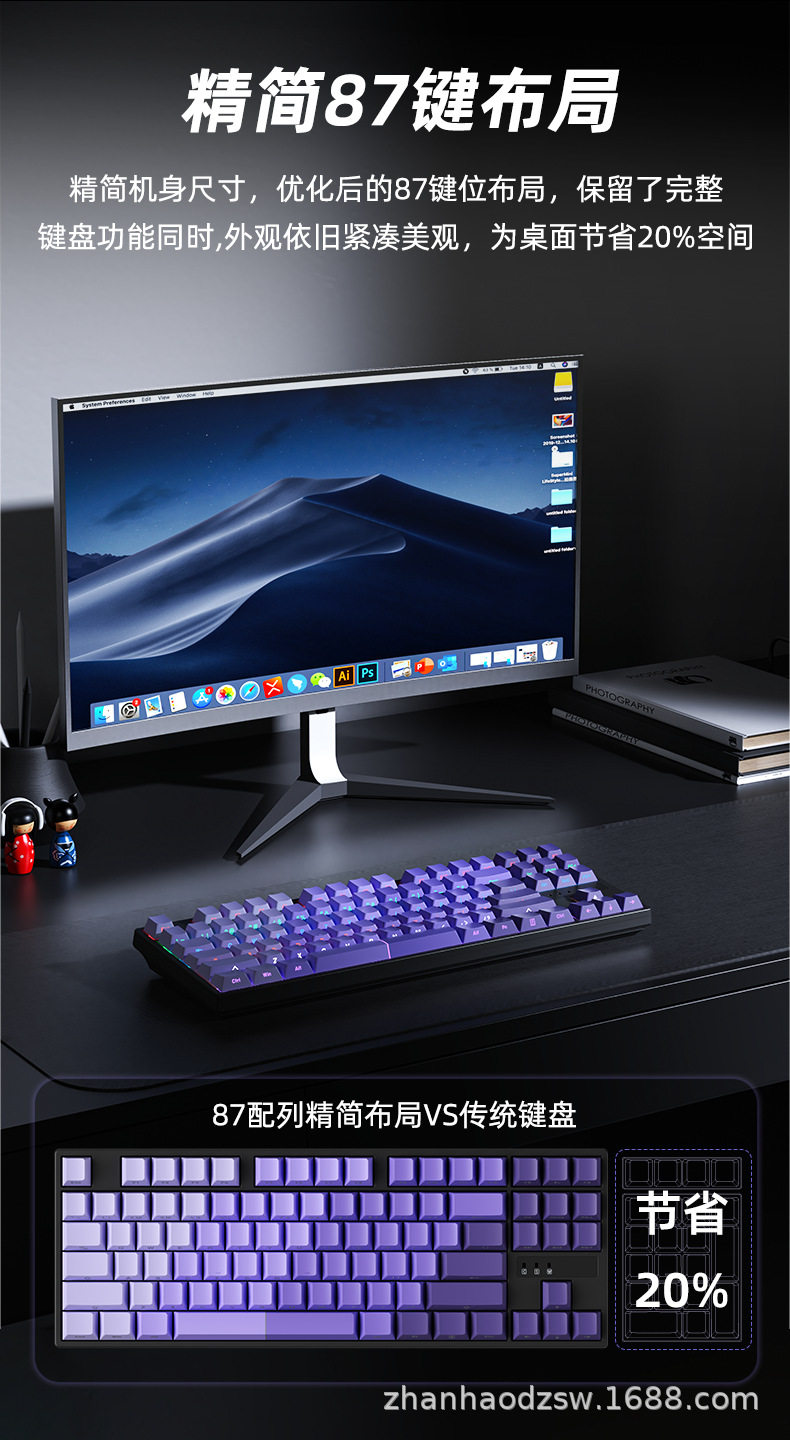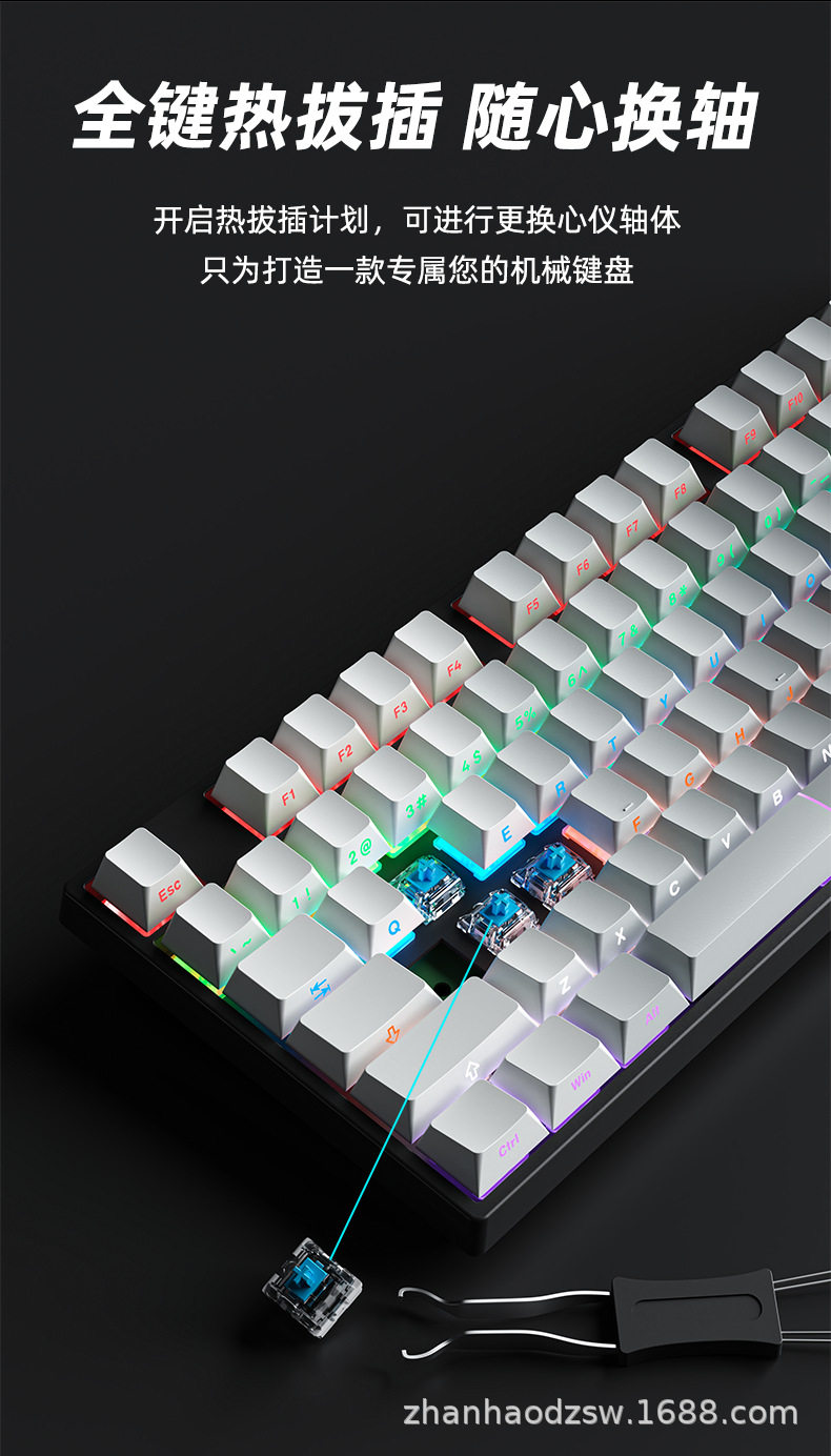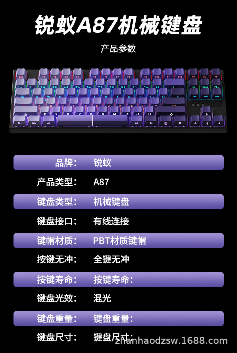 Sharp ant A87 side engraved mechanical keyboard full key 87 key hot plug electric game office mixed light computer peripherals
