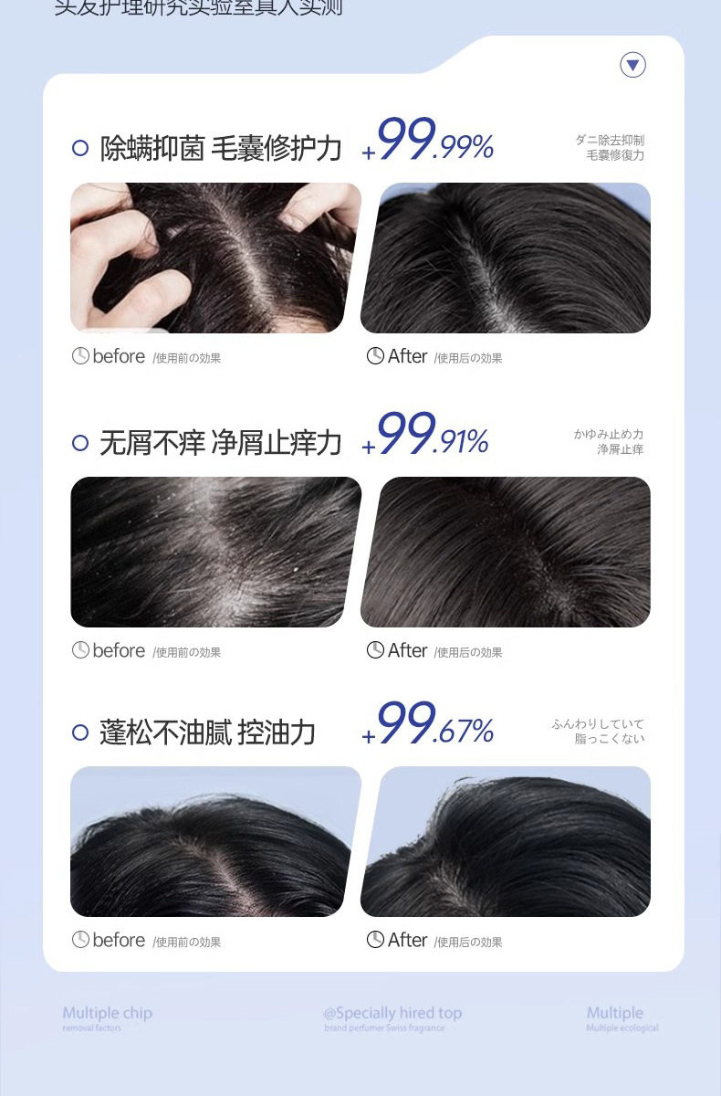 | Efficacy | Anti-dandruff and anti-itching,Anti dandruff,Deep cleaning,Refreshing and oil control,Damage repair,Improve itchy head |