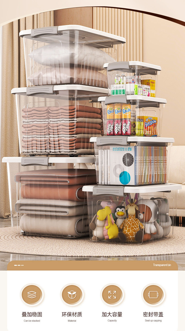 One-Piece Drop-Shipping Transparent Storage Box for Household Clothes, Toy Storage Box, Large-Capacity Storage and Organization Box