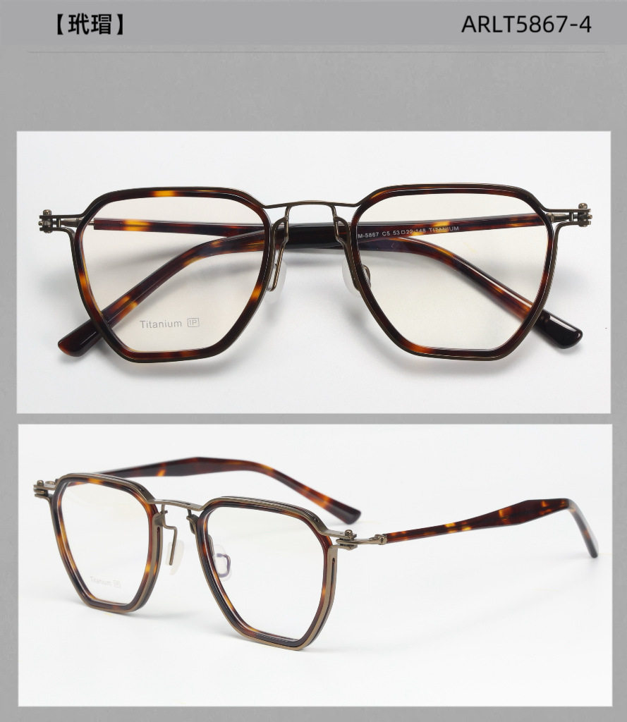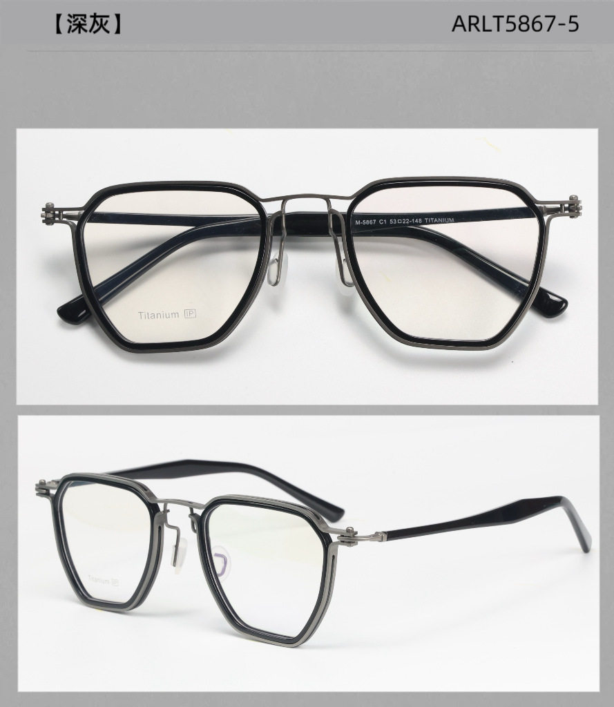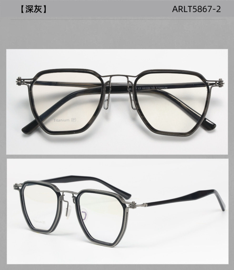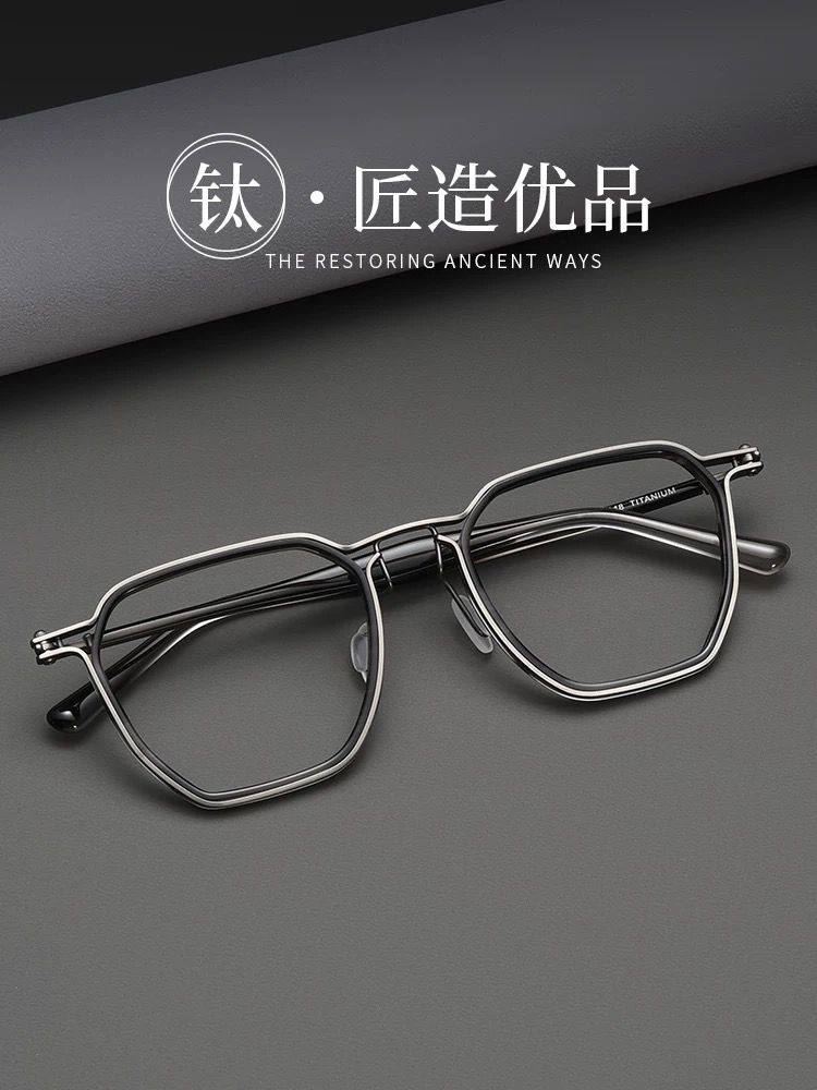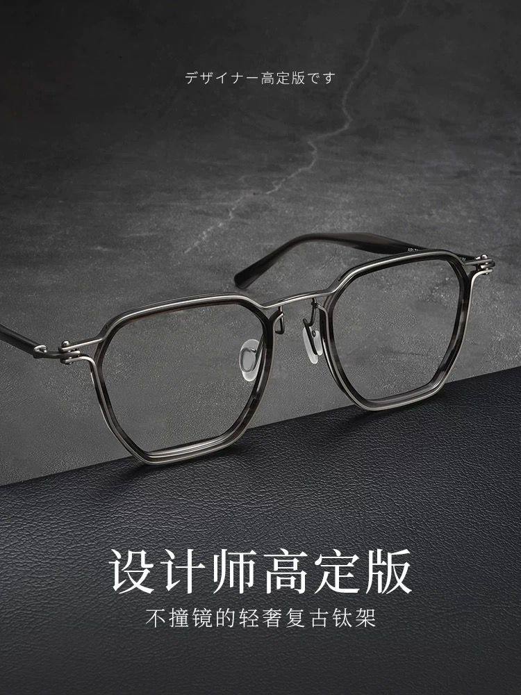 Japanese Style New Product Italian Pure Titanium Retro with Plate Industrial Design Style Literary Square Frame Myopia Glasses Frame 5867