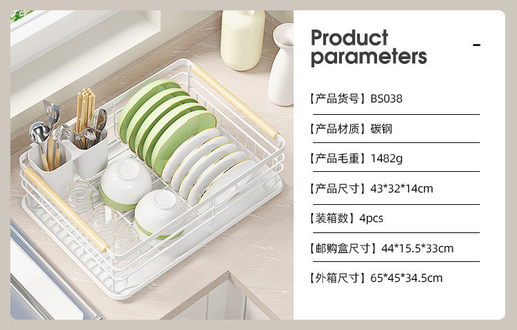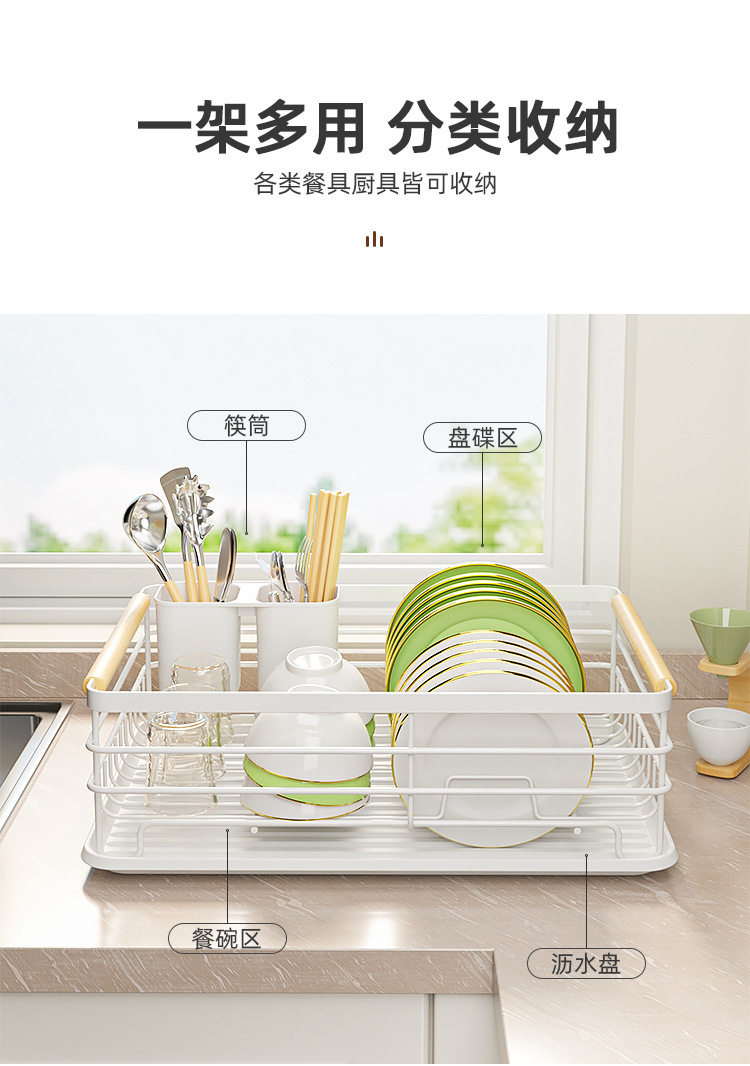 Kitchen Countertop White Single-Layer Plate Rack Drain Bowl Rack Multi-Functional Tableware Storage Rack Bowl Rack Storage Rack