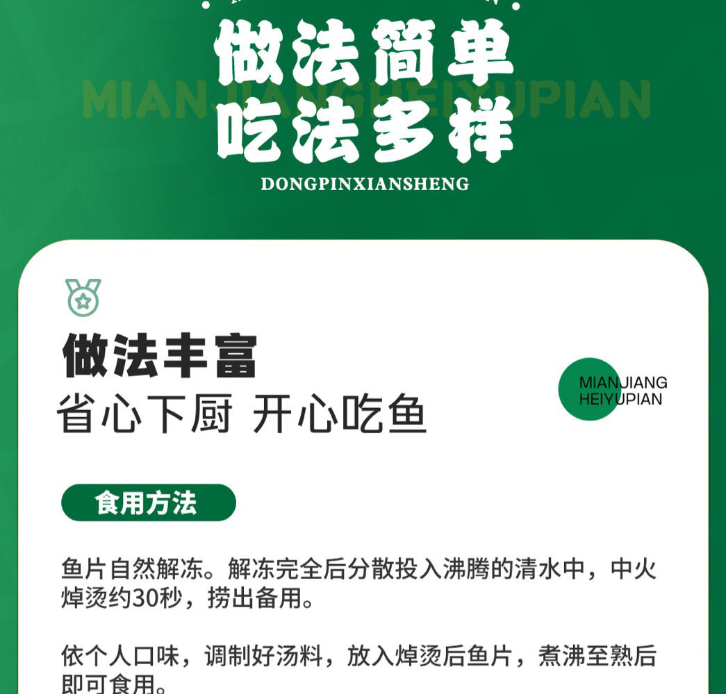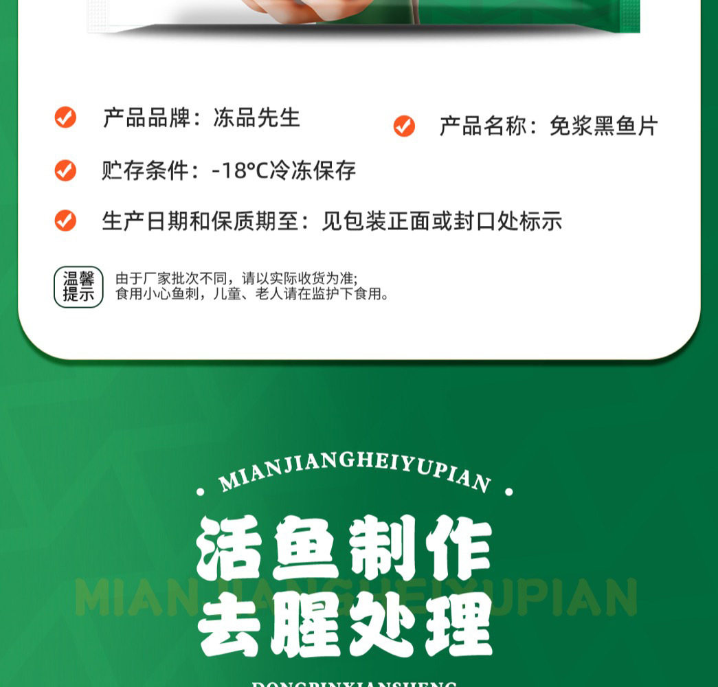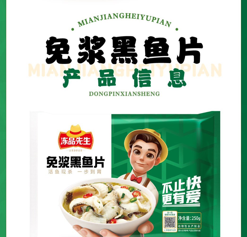| Packaging specifications | Pulp-free black fish fillet 250g/bag |