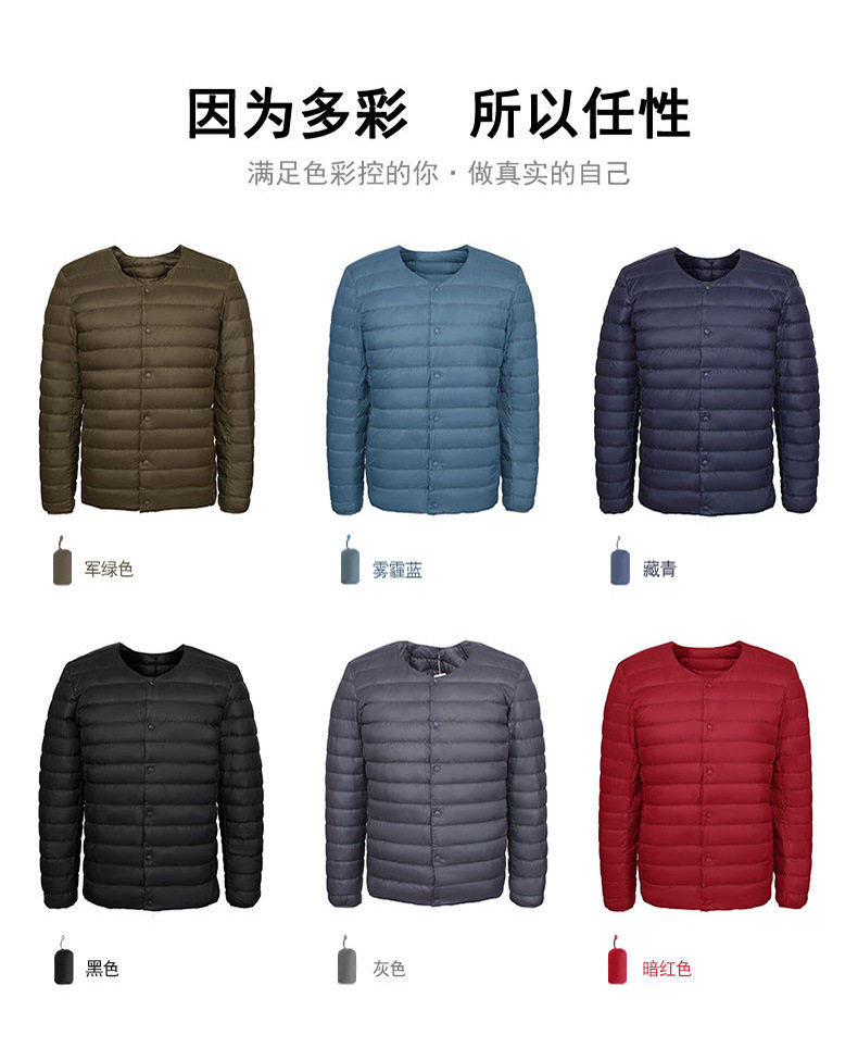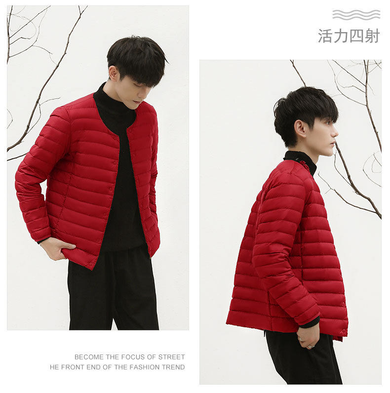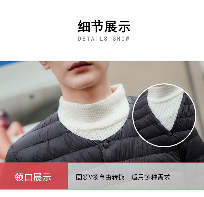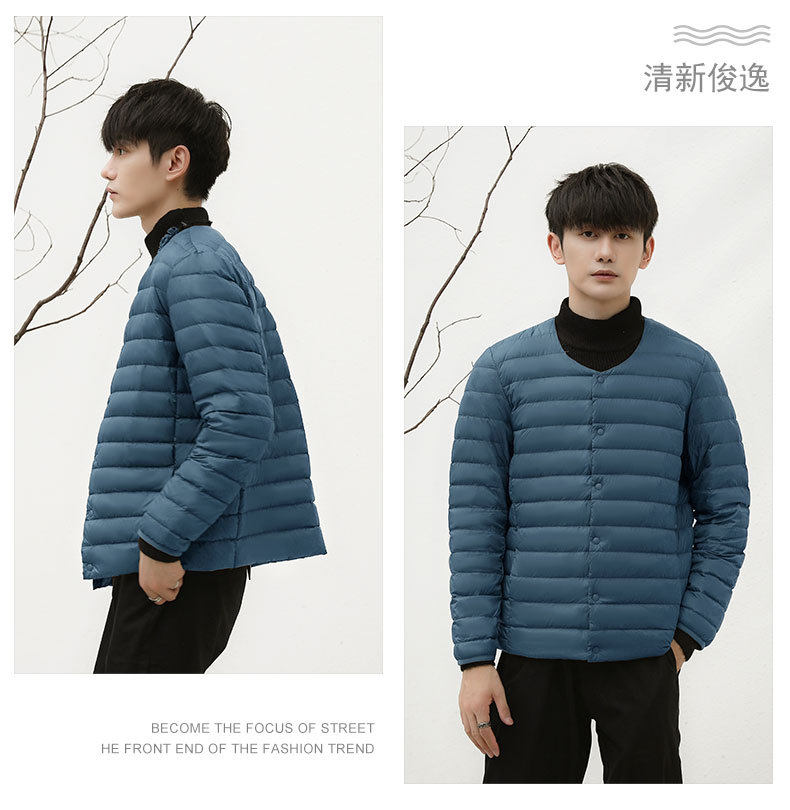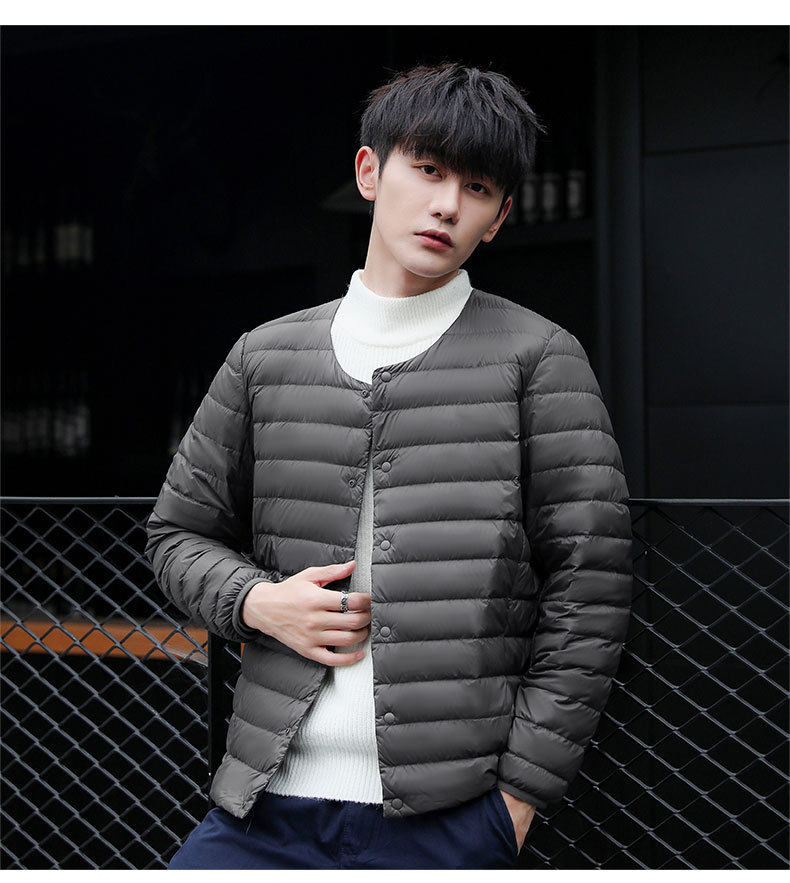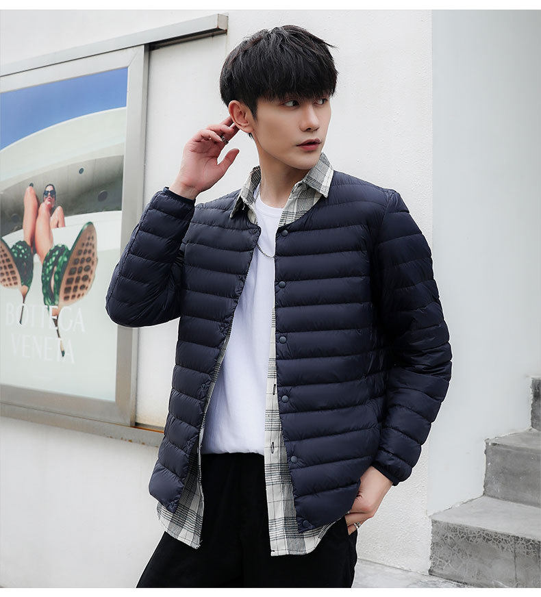 2024 New Lightweight down Jacket Men's Short Round Neck Warm Liner Long Sleeve Slim Thin Large Size Winter Jacket