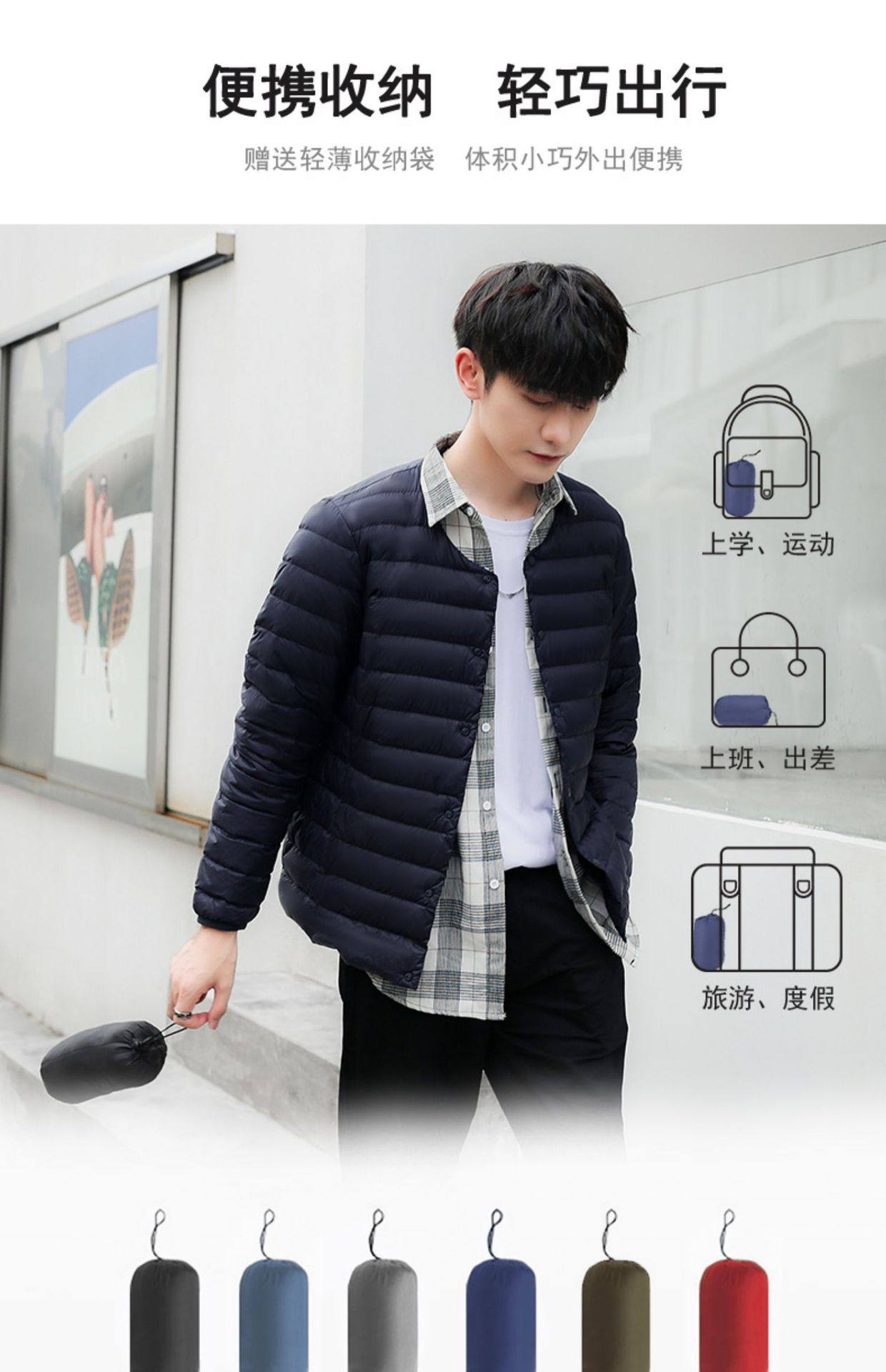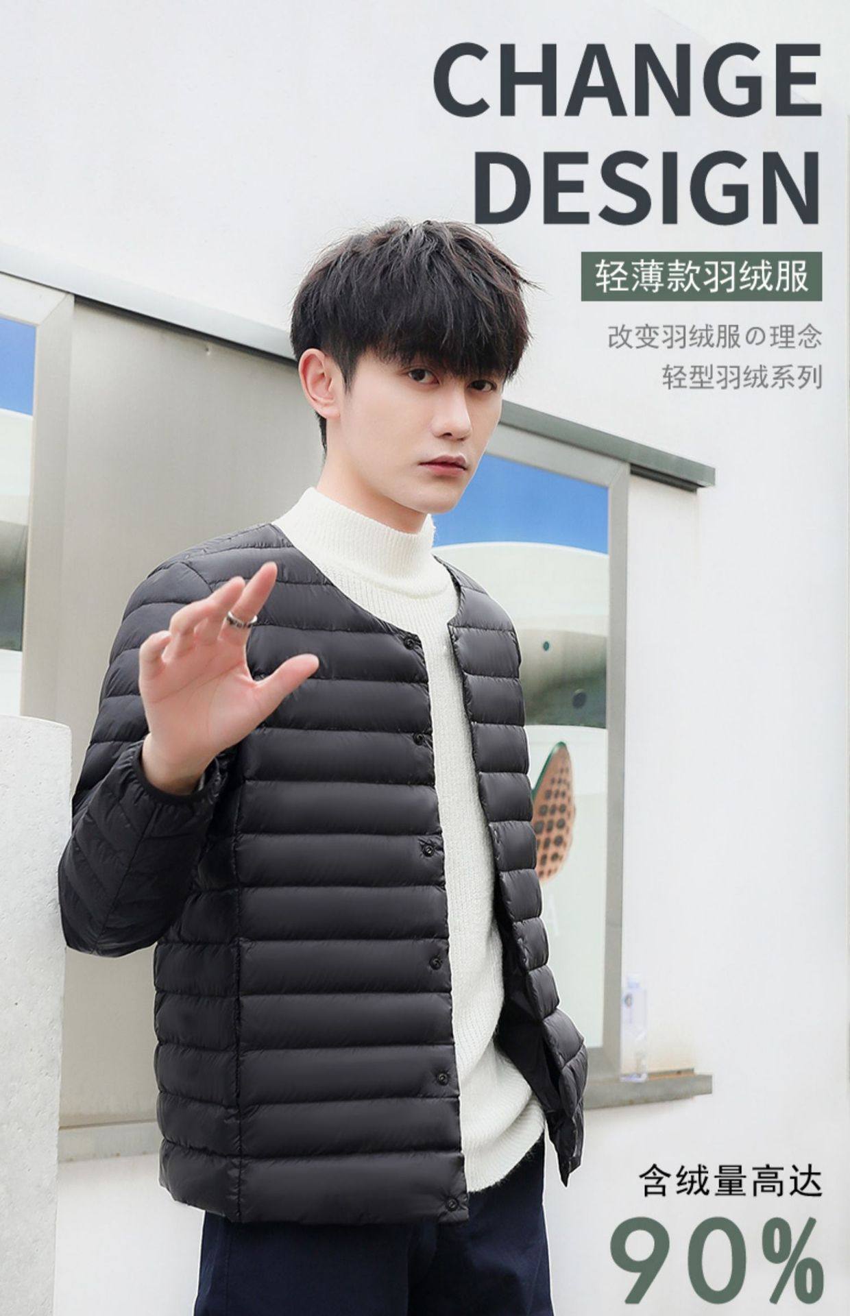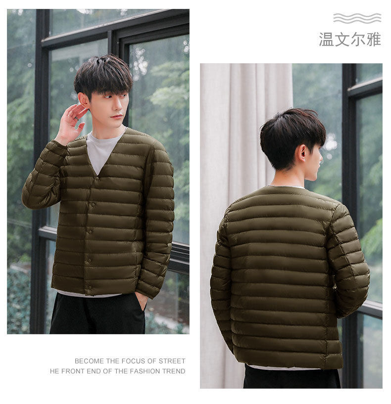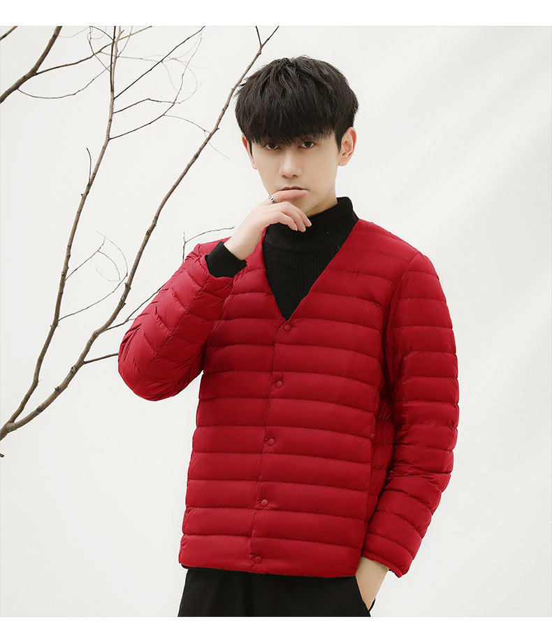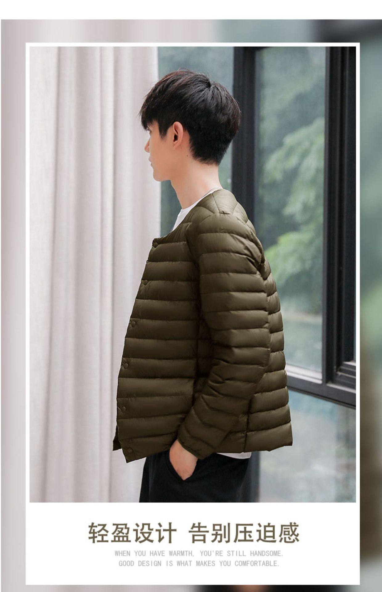 2024 New Lightweight down Jacket Men's Short Round Neck Warm Liner Long Sleeve Slim Thin Large Size Winter Jacket