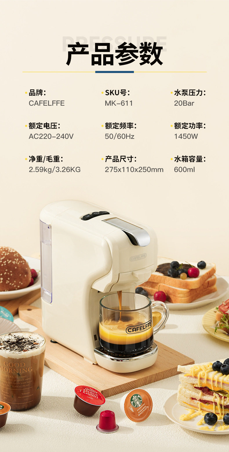Cafelffe Capsule Coffee Machine Home Hotel Pump-Type Automatic Espresso Machine Cross-Border American Coffee Pot