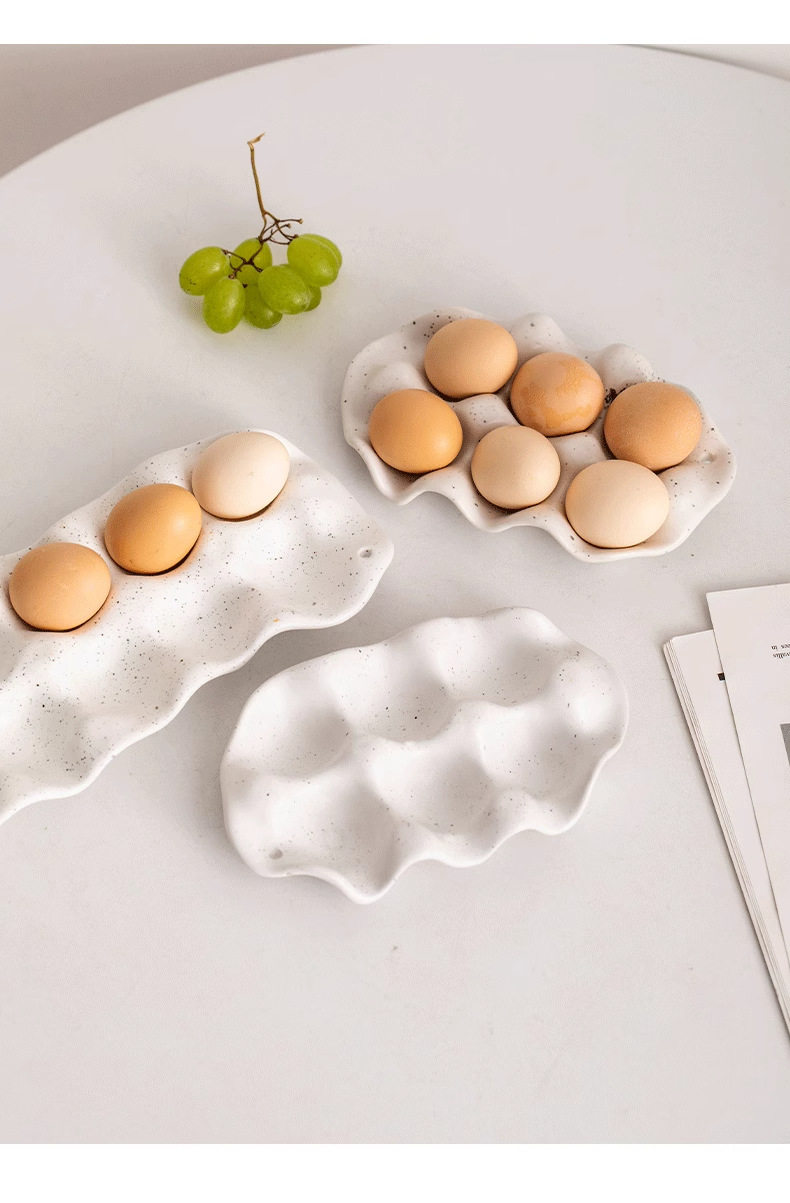 Ins Kitchen Simple Ceramic Egg Tray Storage Box Household Refrigerator Special Fresh-Keeping Box Storage and Organization