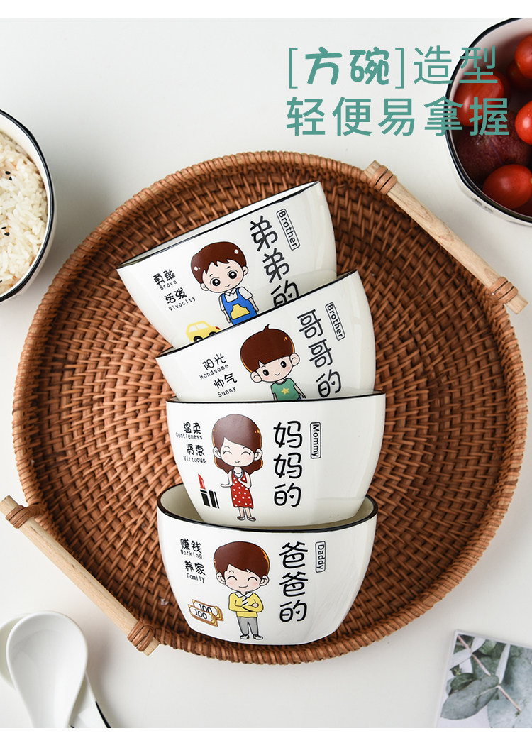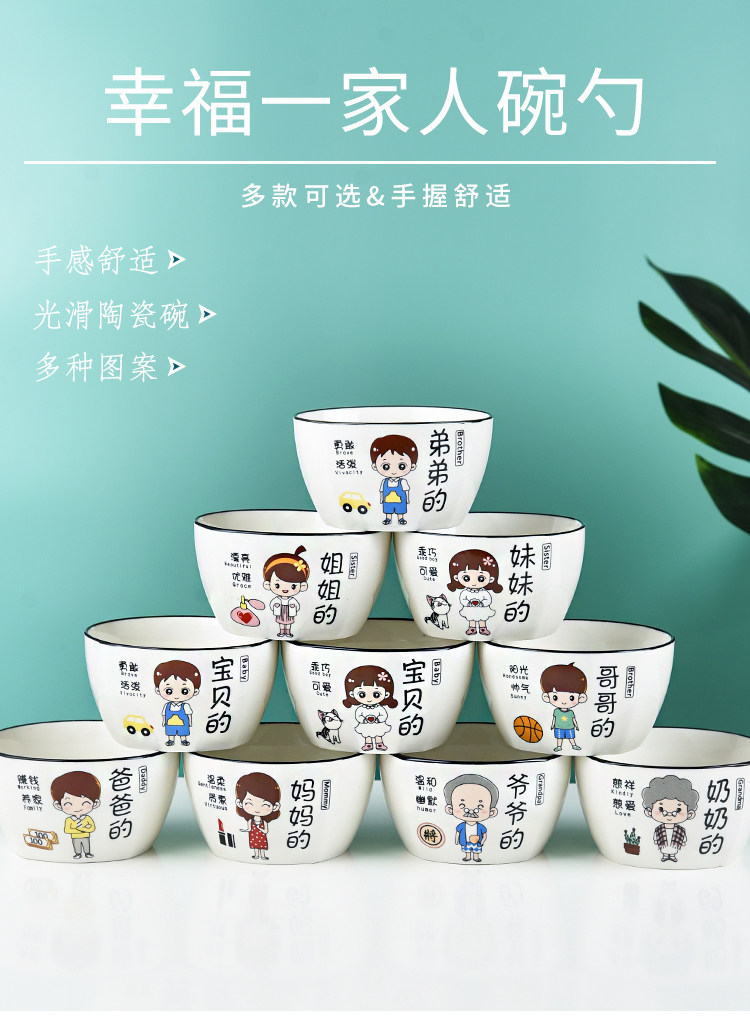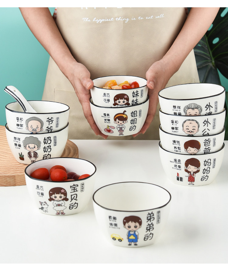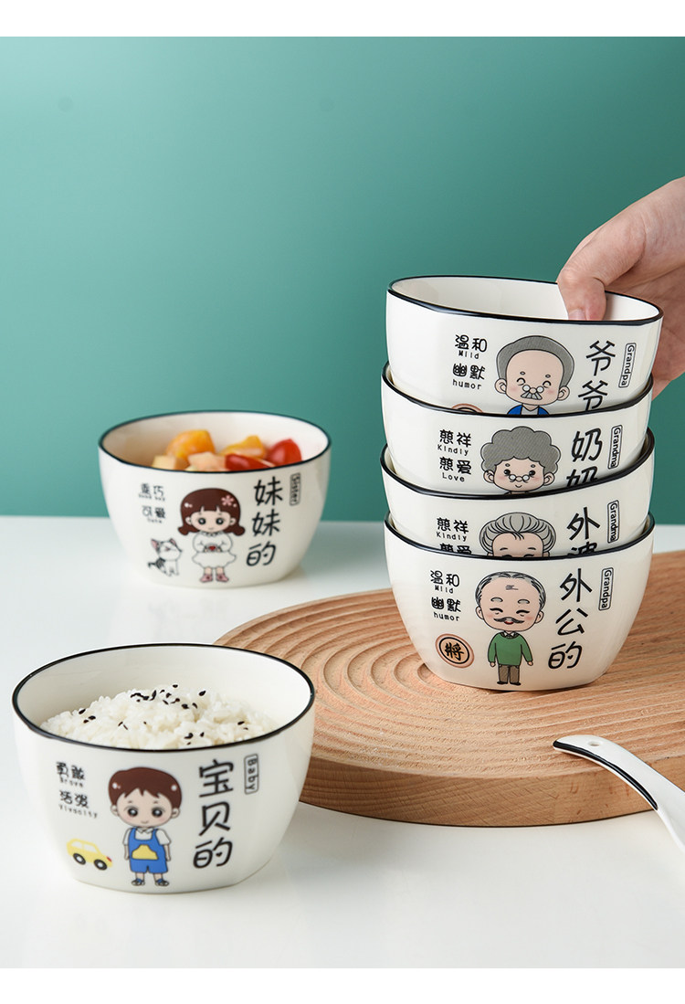 Household Ceramic Bowl Creative Cartoon Character New Rice Bowl Family of Four Family Differentiated Dishes Family Bowl Set