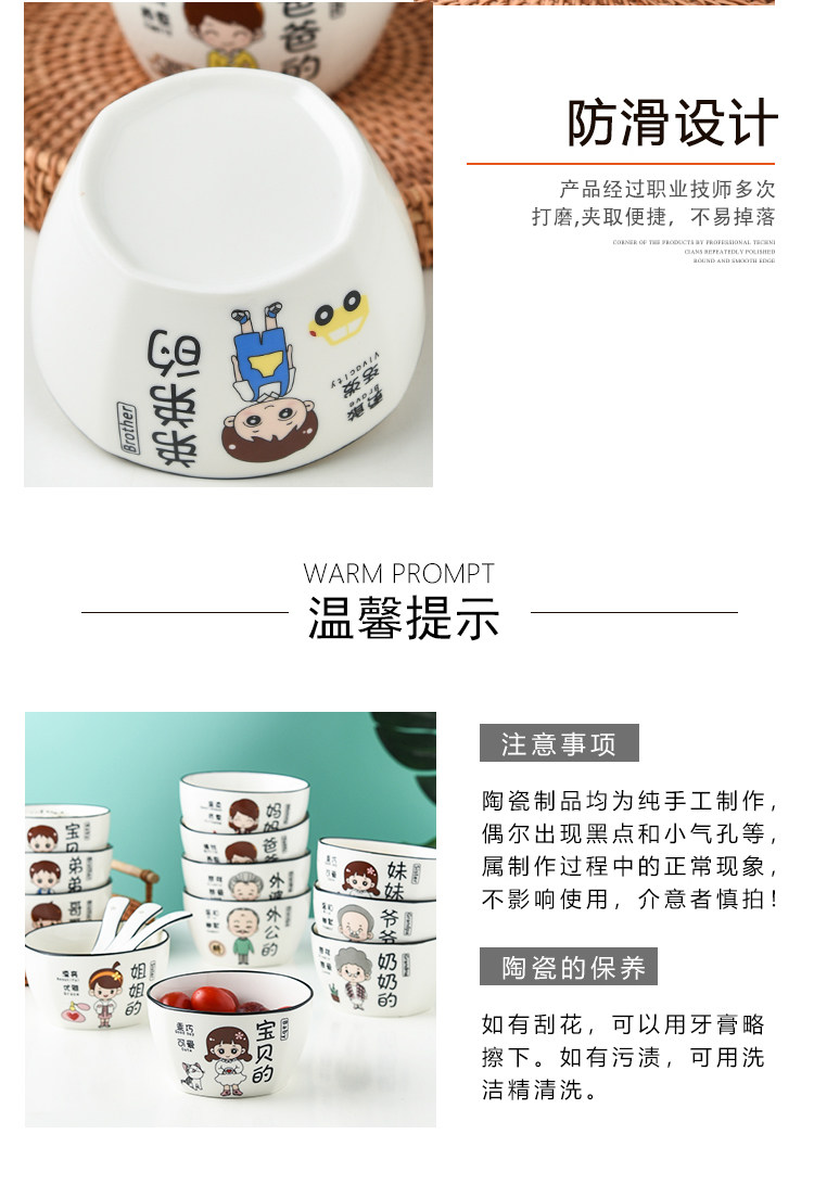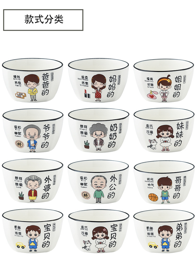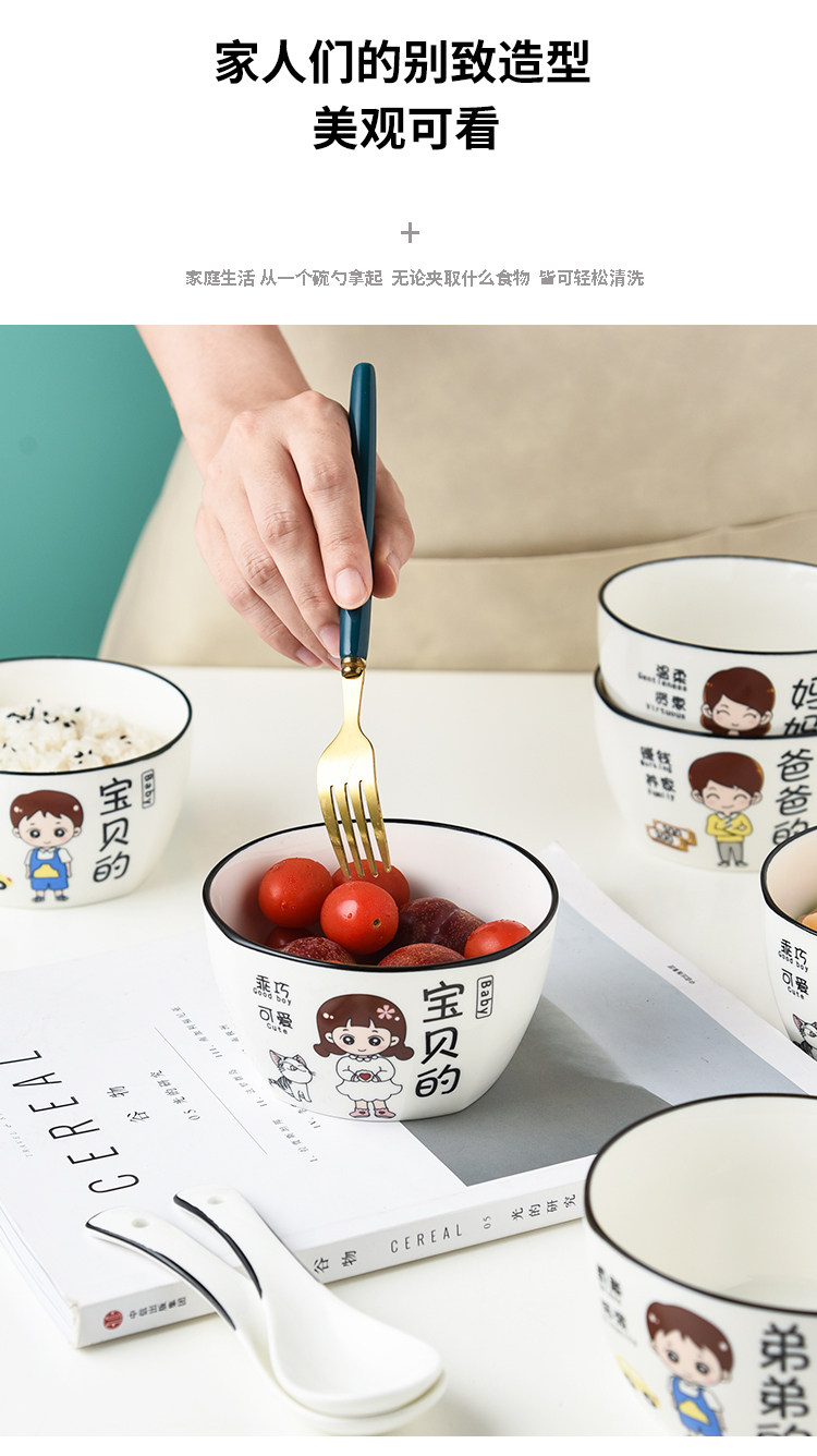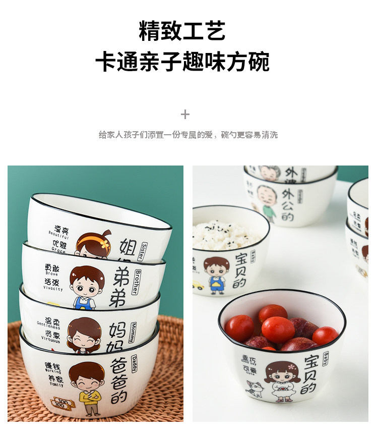 Household Ceramic Bowl Creative Cartoon Character New Rice Bowl Family of Four Family Differentiated Dishes Family Bowl Set