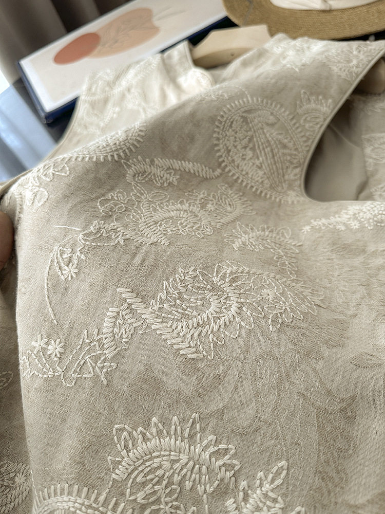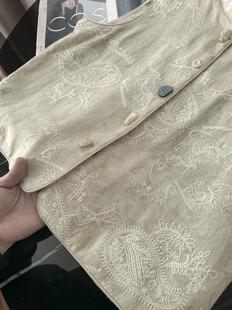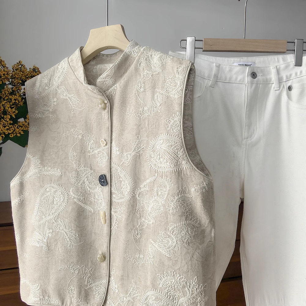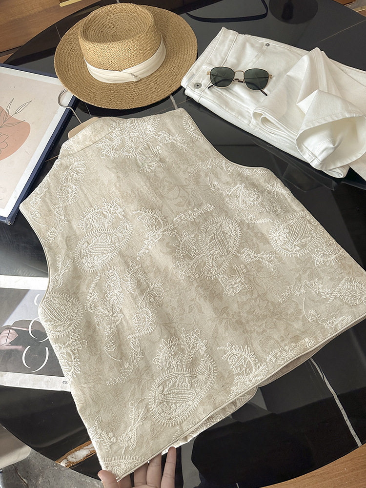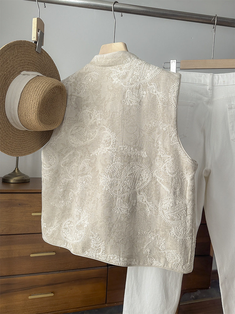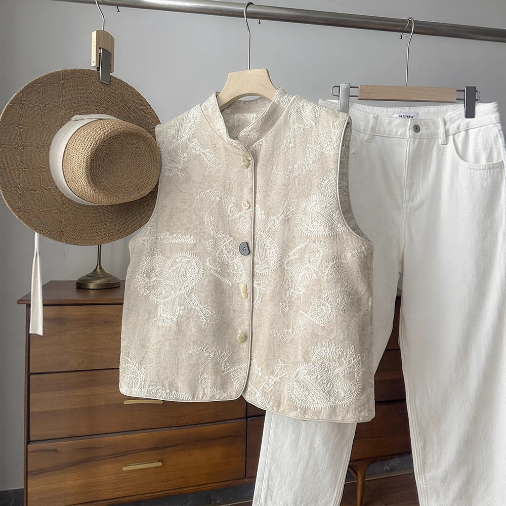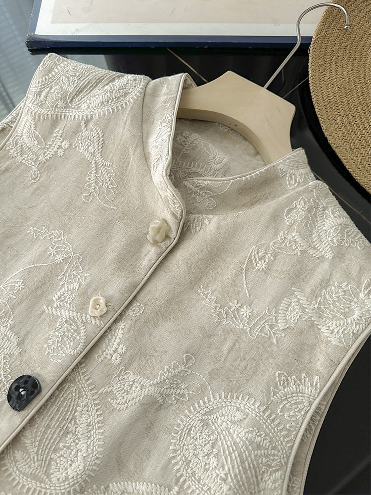 New Chinese-Style Heavy Embroidery National Style Vest Layered Tank Top Linen Sleeveless Jacket Top for Women 2026