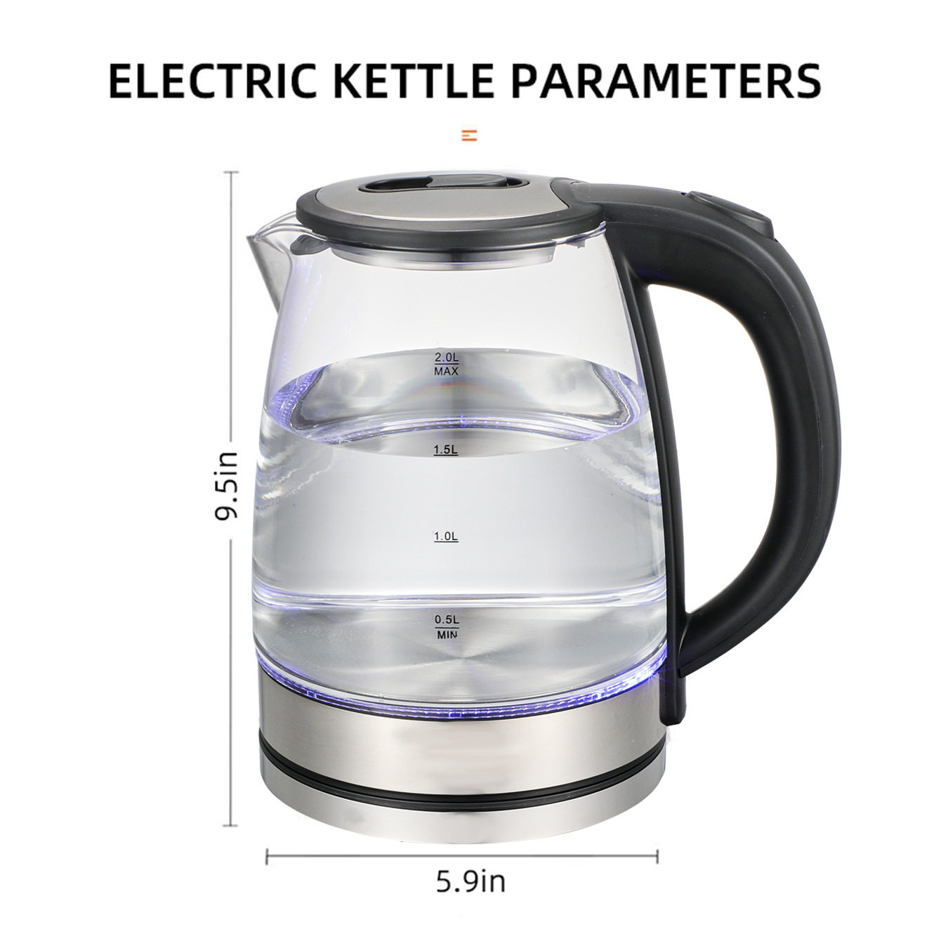 Cross-Border Foreign Trade Us/Eu/Uk/Au/Taiwan/Japan/Korea In-Stock 110V/220V Blue Light Glass Kettle 2L