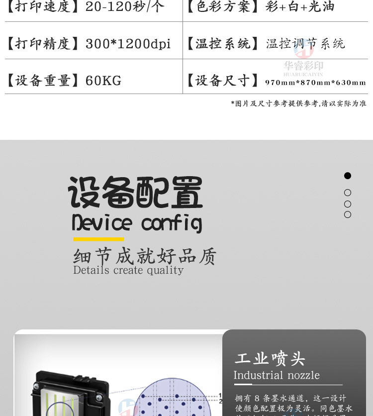 | Printing speed | As fast as 15 seconds/piece (reference) |