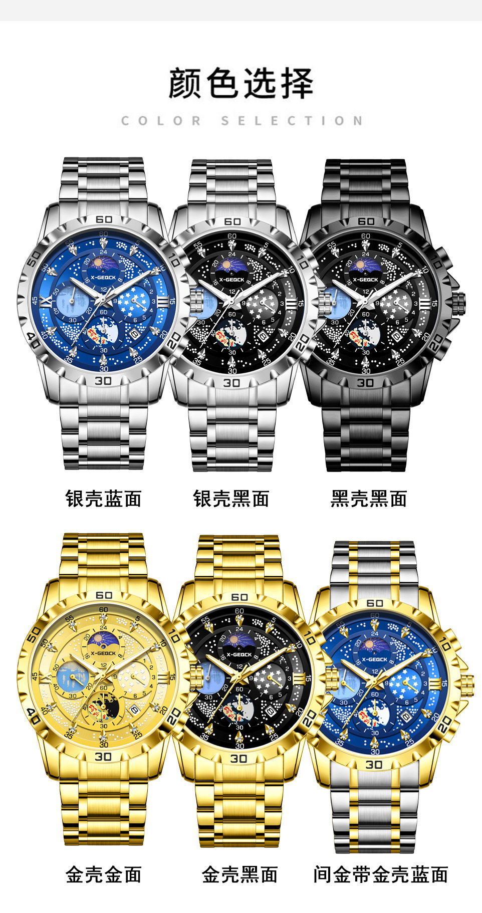 | Color | 077 gold shell gold surface-gold steel belt,077 gold shell black surface-gold steel belt,077-gold shell blue surface-gold steel strip,077 black shell black surface-black steel belt,077 silver shell blue surface-silver steel belt,077 silver shell black surface-silver steel belt |