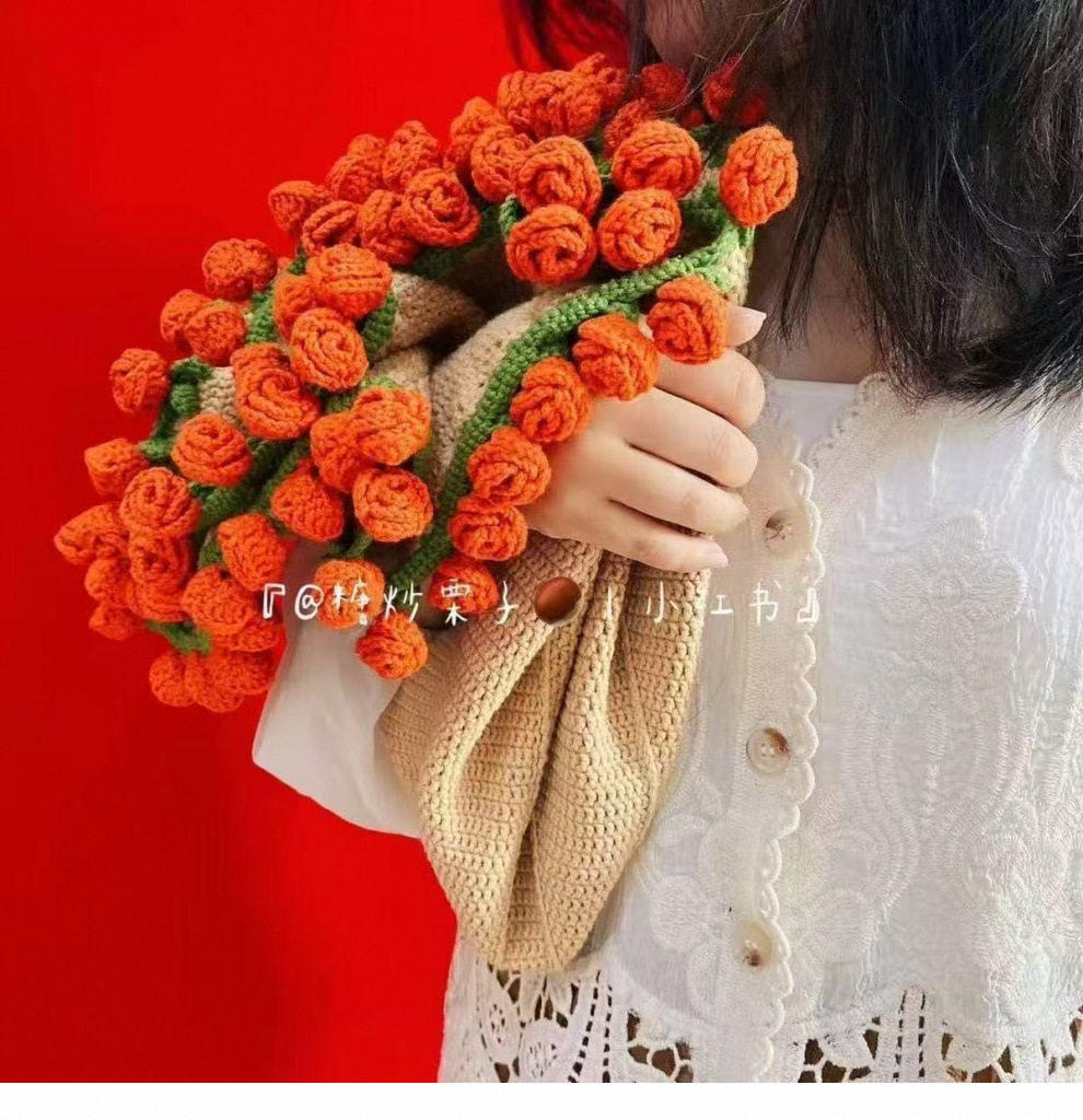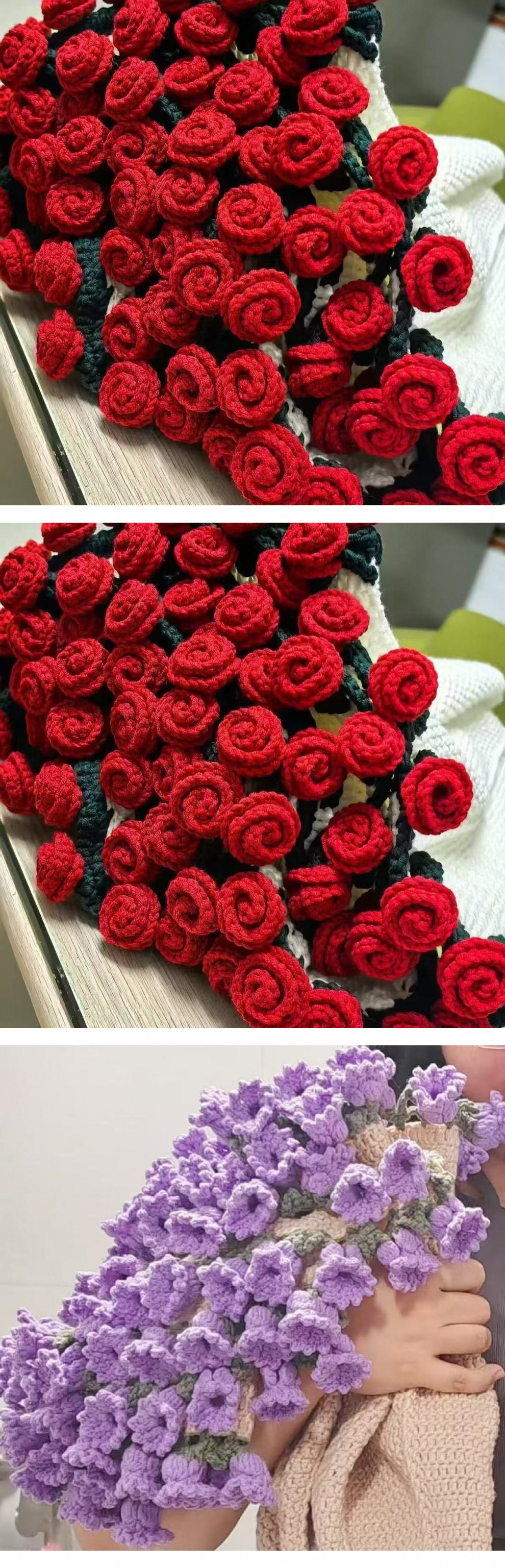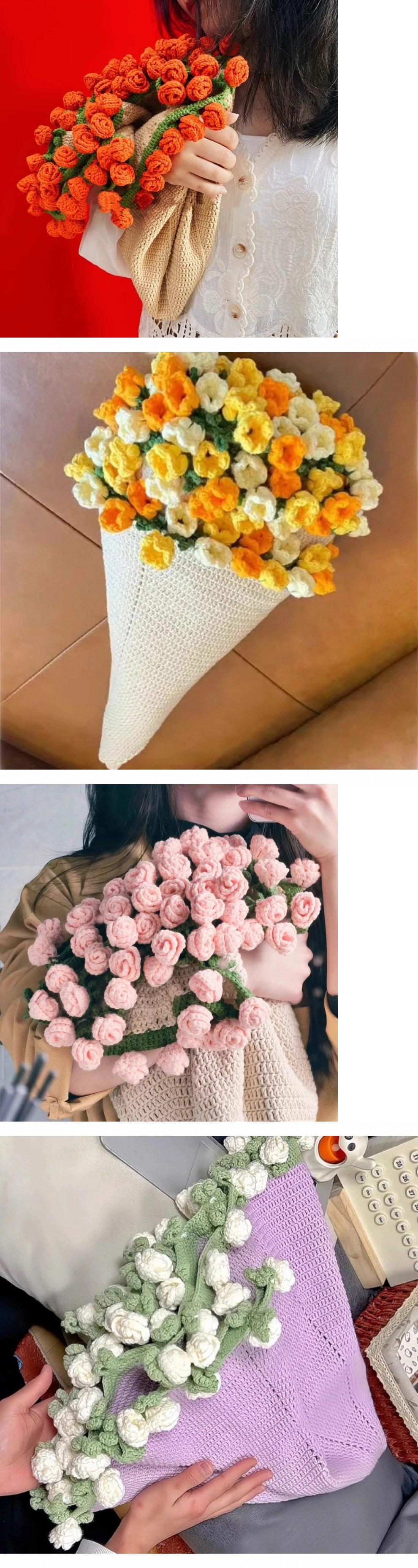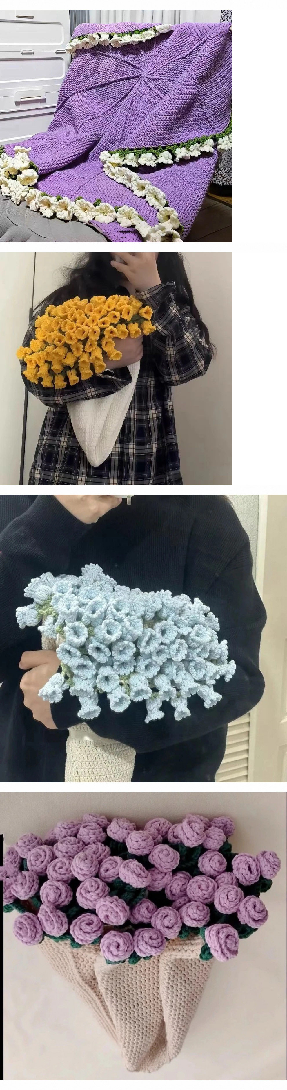 Handmade Wool Bouquet Blanket Material Package Crocheted Lily of the Valley Rose Blanket Turned into Bouquet Creative Gift Drop Shipping