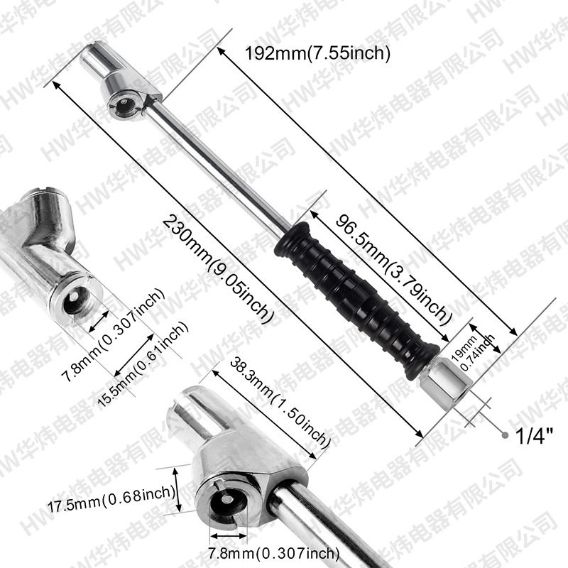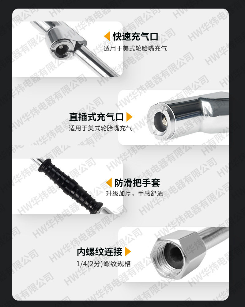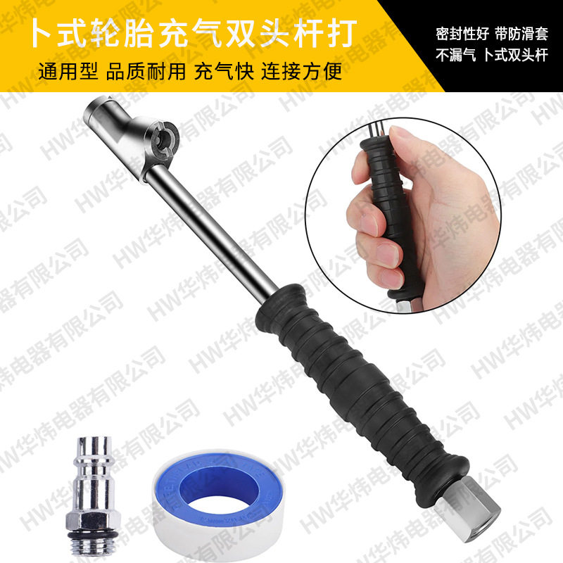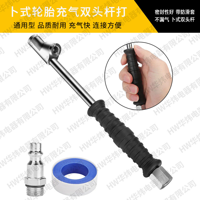 Vehicle-Mounted Tire Inflation Rod Double-Head Inflation Rod Inflator Nozzle with Anti-Slip Sleeve Suitable for 1/4 External Thread Connection