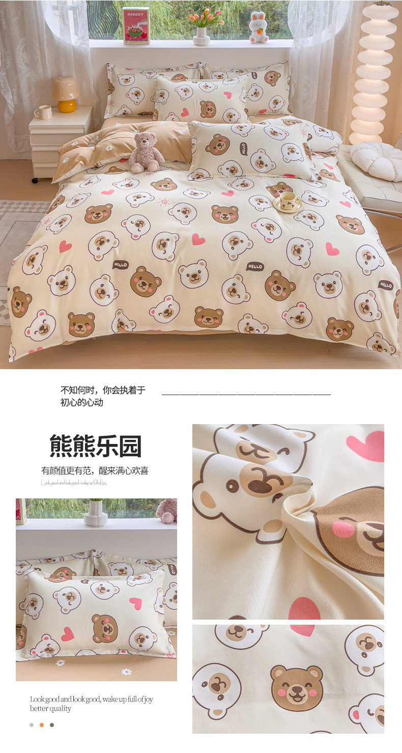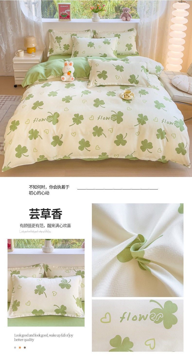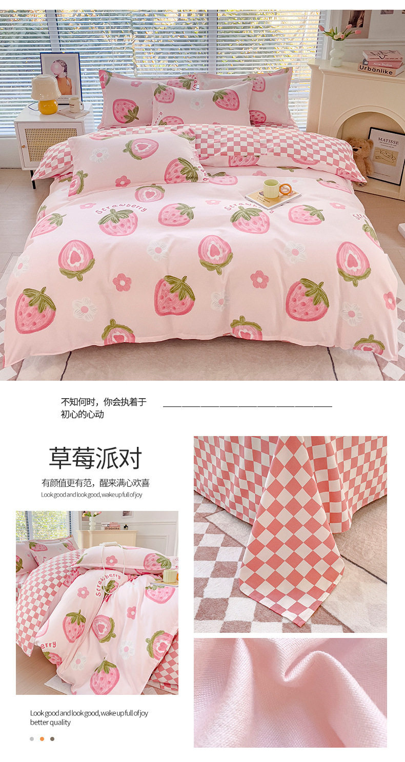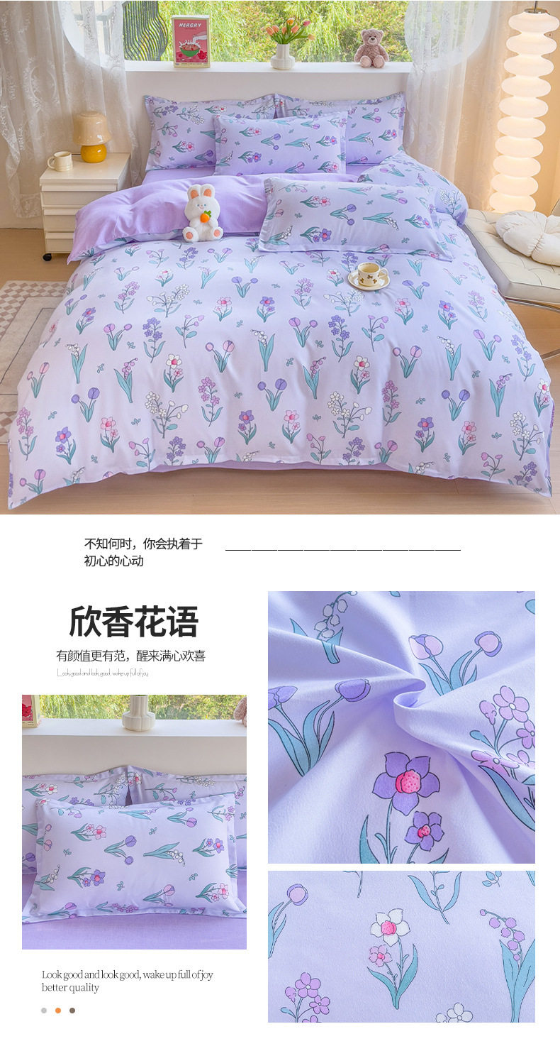 New Class a Thickeneded Brushed Four-Piece Set of Small Fresh Bed Sheetss and Quilt Covers for Students Washed Cotton Three-Piece Bedding Set a